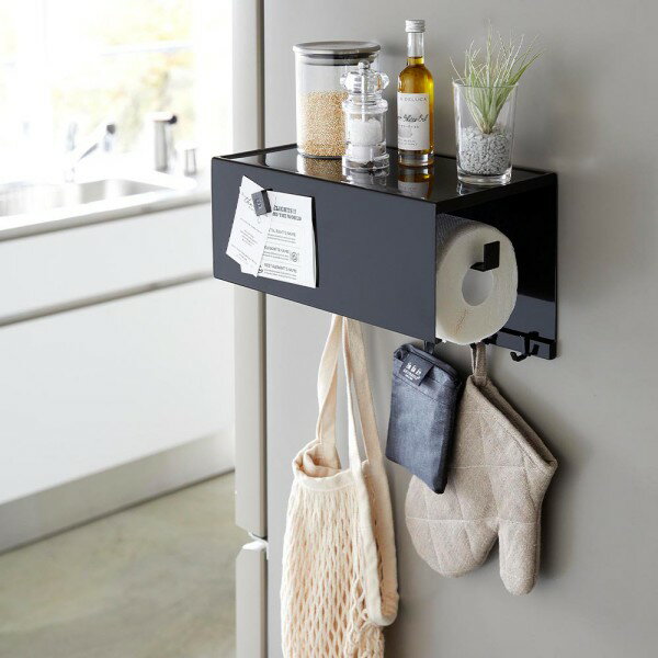 tower《 マグネットトレー付きキッチンペーパーホルダー タワー 》キッチンペーパーホルダー トレイ カバー フック マグネット 大判対応 調味料ラック キッチンフック 冷蔵庫 壁面収納 磁石 キッチン 4098 4099 ホワイト ブラック 山崎実業 YAMAZAKI タワーシリーズ NXT
