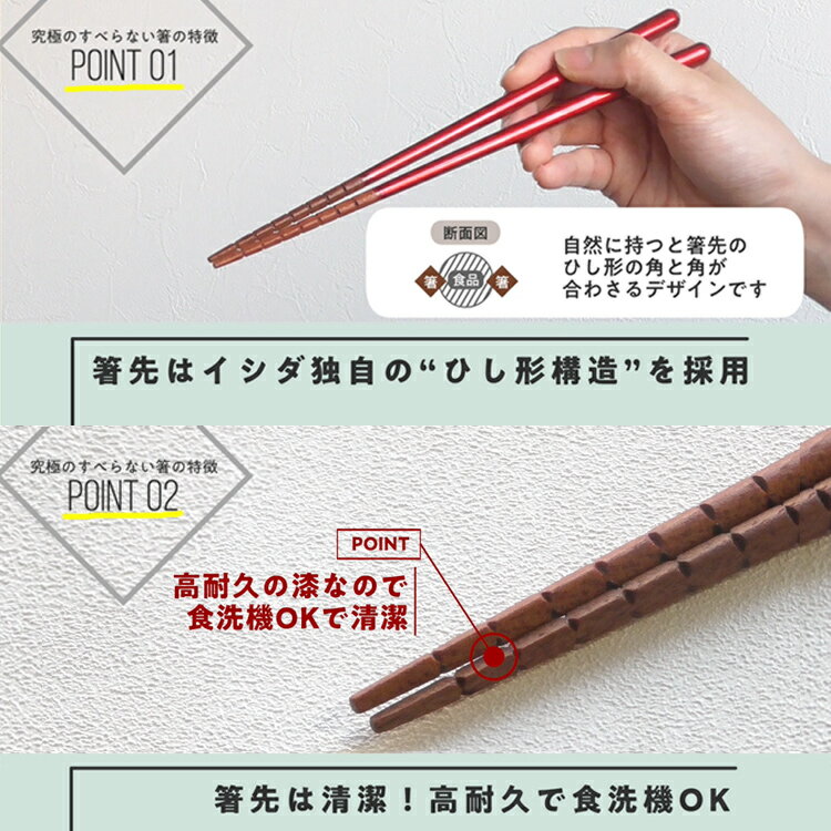 お箸 すべらない 箸 日本製 つかみやすい 食洗機対応 名入れ 箸 23cm 漆仕上げ 抗菌 大人 究極のすべらない箸 こんにゃく つかめる 箸 名入れ箸 滑らない 先角形状 23cm 大人用 1膳 木製 国産 箸 プレゼント ギフト