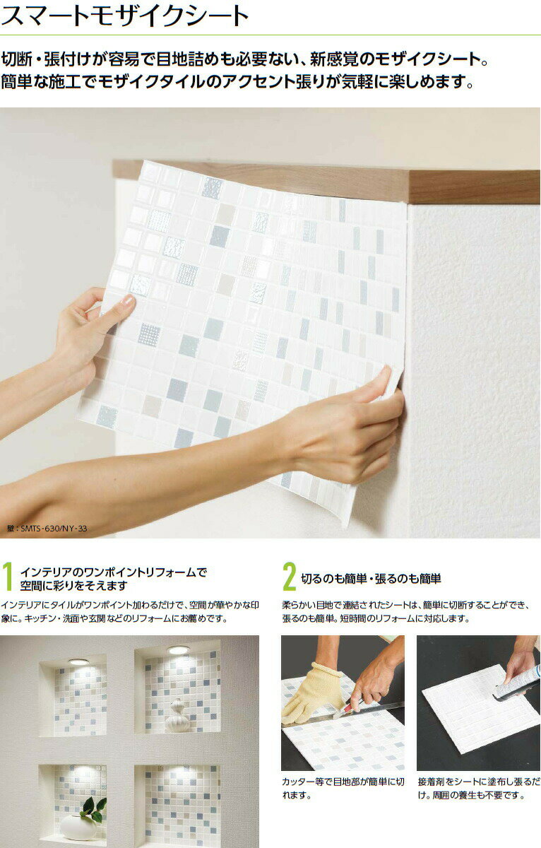 SMTS-630/NY-33 INAX LIXIL リフォーム向けタイル スマートモザイクシート [インテリアモザイク ニュアンス] 600×300mm インテリアのワンポイントリフォーム/切るのも簡単・張るのも簡単【純正品】