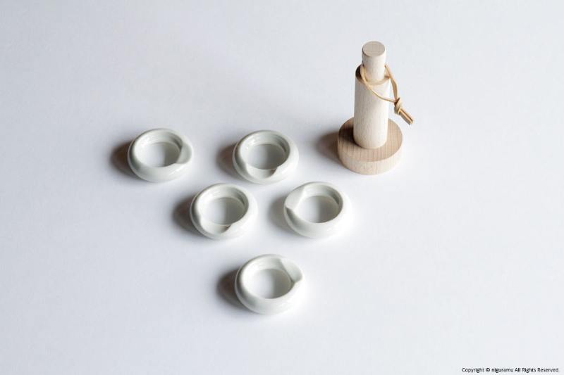 リングセット(磁器製リング形箸置き5個セット・木台付き)【 ceramic japan / セラミックジャパン】