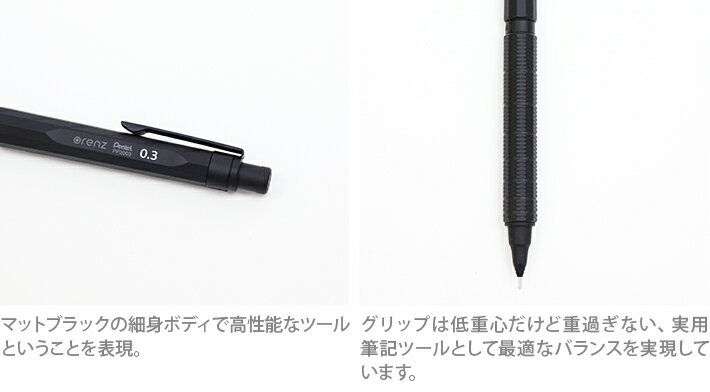 ※こちらの商品の名入れ印字箇所はクリップ部分になります。 芯を出さずに書けるから芯が折れない「オレンズシステム」搭載。 最初に一回ノックするだけで、自動で芯が出てくる自動芯出し機構を備えているので、芯がなくなるまで書き続けることができる! 3種類からお選びいただけます。 【芯径】 ・0.2mm(PP3002-A) ・0.3mm(PP3003-A) ・0.5mm(PP3005-A) 【詳細】 サイズ:11×10×143mm 重量:18g ※商品写真はサンプルのため、デザイン等若干の差異が生じます。予めご了承ください。 ※お使いの画面環境により画像の色味に多少の差異が生じます。予めご了承ください。