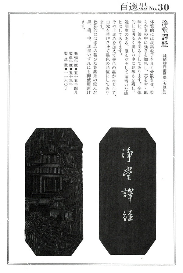 【百選墨】浄堂譯経/No.30/6.5丁型/昭和53年製【墨運堂】