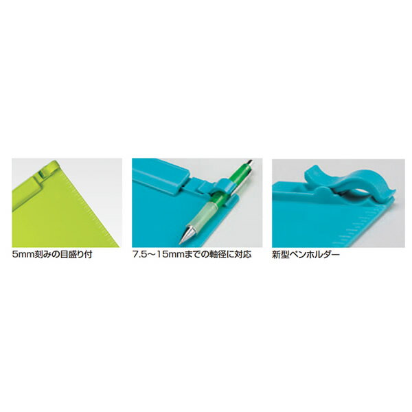STAFF VOICE スタッフが商品を見た、触れた、利用した感想 制作担当者 スリムな本体に使いやすい工夫が盛り込まれた製品! ボードの右側には5mm刻みの目盛りが付いています。 接客スタッフ A4-Sはこちらからどうぞ(全5色)↓ ■クリップボード SSS-3057P 重ねてもスマートな薄型設計! セキセイ株式会社/クリップボード A4-E SSS-3056P フラットクリップを採用した薄型クリップボードです。 クリップ部分は指の形にフィットした、開きやすい形状。 さらに、7.5〜15mmまでの軸径に対応したペンホルダー付。 形を問わず様々なペンを挟むことができ、ペンの着脱も簡単です。 ※こちらの商品は宅配便での配送になります。 ※商品サイズが規格外のため、DM便・ネコポスでお送りすることはできません。 規格・仕様 A4-E ペンホルダー付(直径7.5〜15mm対応) サイズ 縦323×横234mm カラー スカイブルー・ネイビーブルー・レッド・ピンク・グリーン・ライトグリーン・イエロー・ブラック・グレー・ホワイト 適正収容枚数 30枚 材質 再生ABS樹脂