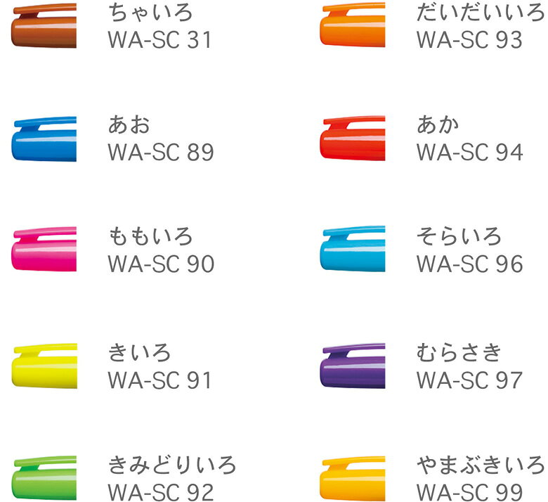 STAFF VOICE スタッフが商品を見た、触れた、利用した感想 制作担当者 インクを補充して繰り返し使うことのできるエコな蛍光マーカーです。 ■専用補充インク「蛍コートチャージャー」はこちらからどうぞ 接客スタッフ セット商品はこちらからどうぞ↓ ■5色セット(橙・黄・黄緑・空・桃) ■10色セット(全色) ペン先の不満をぐっと軽減!いつもきれいにマーキング トンボ鉛筆/蛍光マーカー<蛍coat80> WA-SC 詰め替えタイプのラインマーカーです。 ポリマーコート芯により、ペン先の周囲をしっかりガード。 「ペン先がつぶれて線幅が広がる」「定規を使うと汚れてしまう」というような、従来の蛍光マーカーへの不満を解消しました。 万一飲み込んでしまっても空気が通る通気性安全キャップを採用しています。 仕様 <軸>再生ポリプロピレン樹脂 <ペン芯>ポリエステル・ポリアセタールコート インク補充式 通気性安全キャップ 筆記線幅 約3.8mm インク色 きいろ・ももいろ・ちゃいろ・あお・きみどりいろ・だいだいいろ・あか・そらいろ・むらさき・やまぶきいろ 用途 オーバーライン・アンダーラインなど 本体サイズ 最大幅15×全長141mm 重量8g