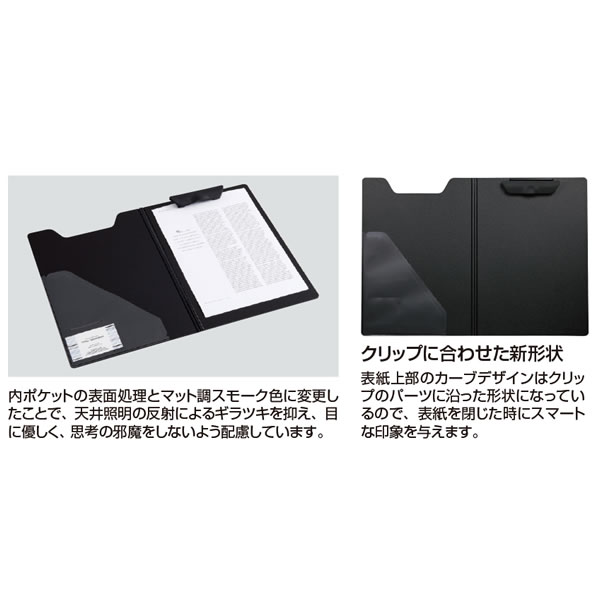 クリップファイル〈 エクセレント〉 発泡美人 洗練されたデザインのオリジナルクリップを採用 スタイリッシュなクリップファイルです 機能性とデザイン性を高めたクリップカバーを採用。 クリップに付いたすべり止めストッパーが書類をしっかり固定します。 不透明の表紙が付いているので、個人情報関連の書類や、簡単に見られたくない書類の保護に最適。 表紙は360°折り返せるので、立ったままの筆記でも書き込みやすい。 名刺やメモが挟める内ポケット付。 反射によるギラツキを抑えた、目に優しい素材です。 本体サイズ 334×238×10mm 適正収容枚数 50枚 カラー ネイビーブルー、レッド、ブラック、ホワイト
