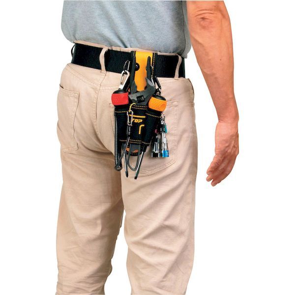 トップ工業メーカーお問い合わせ:0256-33-1681【特長】●工具のこだわりから生まれた厳選腰袋「Tcarry(ティーキャリー)シリーズ」です。●表面には900デニールナイロンを採用、更にリベット補強を施してあり、プロ仕様の耐久性があります。●利便性の高いカラビナ、Dカン付きです。【用途】●作業工具の持ち運びや腰回りの収納に。●モンキレンチやペンチなど工具を収納できます。【仕様】●形状:工具差し4丁タイプ●色:黒/黄●幅(mm):85●奥行(mm):60●高さ(mm):240●ベルト通し幅(mm):60【仕様2】●ベルト通し幅:60mm【材質/仕上】●生地:ポリエステル●金具:鉄【セット内容/付属品】●カラビナ●Dカン【原産国】中国