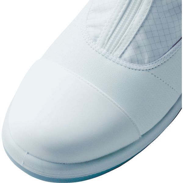 ミドリ安全メーカーお問い合わせ:048-989-3177【特長】●破損しやすいつま先をガードしたゴミが出にくいフルキャプ仕様です。●つま先にワイド樹脂先芯を搭載したクリーンルームシューズです。●特殊な設計と素材を採用した靴底で、チッピングによる発塵を防ぎます。●脱着が容易なファスナータイプです。●洗濯することが出来ます。【仕様】●色:ホワイト●足幅サイズ:EEE●寸法(cm):26.5【仕様2】●JIS T 8103 ED-O/C2/人工皮革/S合格●耐圧迫性荷重:10±0.1kN●電気抵抗値:1.0×10[[の5−8乗]]Ω(23℃ C2)【材質/仕上】●甲被:人工皮革/ポリエステル/ポリエステルメッシュ●靴底:新発泡ポリウレタン2層●先芯:ワイド樹脂【注意】●クリーンパックではありません。【原産国】日本