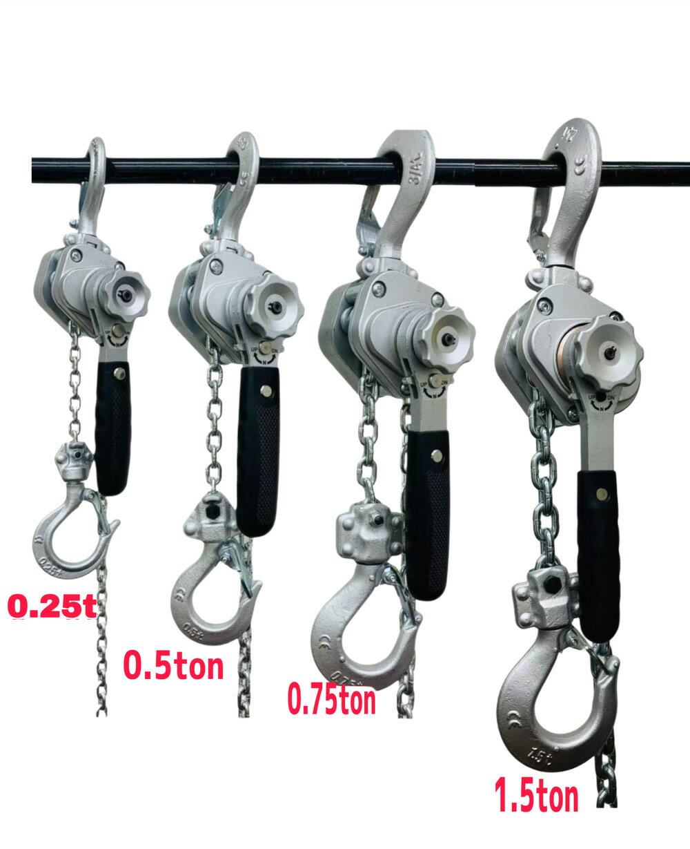 キトーメーカーお問い合わせ:0120-988-558【特長】●オーバーロードリミッター(過負荷防止装置)を標準装備しています。●一体形アルミボディ構造採用で、小型、軽量により携帯性があります。●手引力が小さく、作業がスムーズです。●強力ロードチェーン(破断応力1000N/[[MM2]])を装備しています。【仕様】●定格荷重(t):0.50●標準揚程(m):2.5●フック間最小距離(mm):260●ロードチェーン(m):2.5●ハンドチェーン(m):2.5【仕様2】●使用温度範囲:-40℃〜60℃●横ずれ防止付フックラッチ(上下フック共通)●ハンドチェン標準長さ二つ折:2.5m●巻上平均手動力:187N●ロードチェン線径×掛数:4.3×1【材質/仕上】●ロードチェーン:ニッケルメッキ特殊合金鋼●ハンドチェーン:鉄−亜鉛メッキ【原産国】日本
