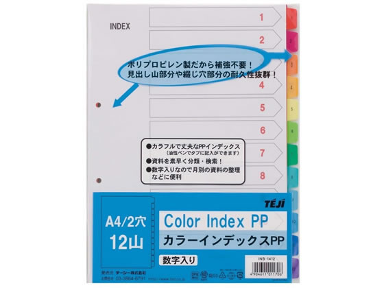 テージー カラーインデックスPP A4タテ 12山(数字入り) 2穴 5冊