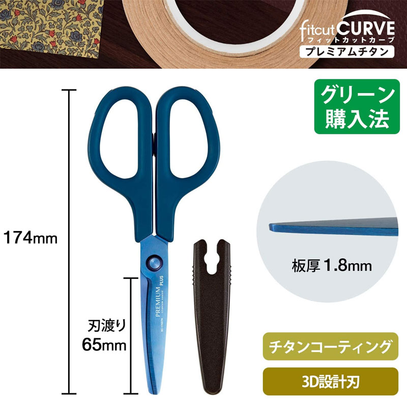 プラス はさみ フィットカット カーブ ベルヌーイ カーブ刃 プレミアムチタン イージーグリップ 左右対称 ブルー アイボリー ピンク ネイビー ブラウン SC-175STN PLUS 【2点までネコポスも対応】