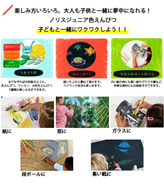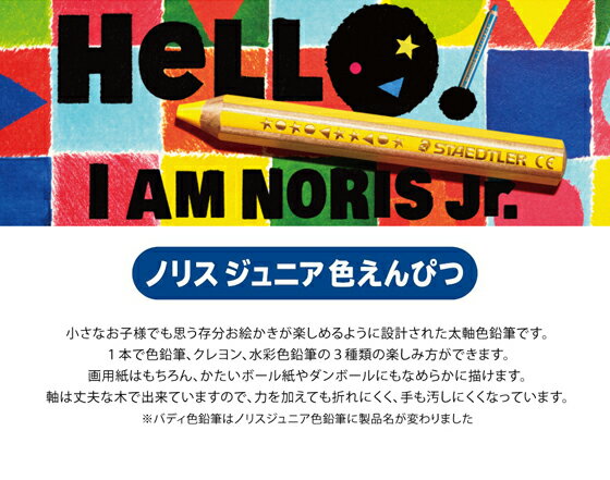 色鉛筆 クレヨン 安全 幼児 水でおとせる ノリスジュニア色鉛筆 6色セット 1本3役 塗り絵 おしゃれ かわいい 六角軸 短い 太軸 プレゼント ギフト 入園 2歳 色えんぴつ くれよん ステッドラー 【在2】 【メール便不可】