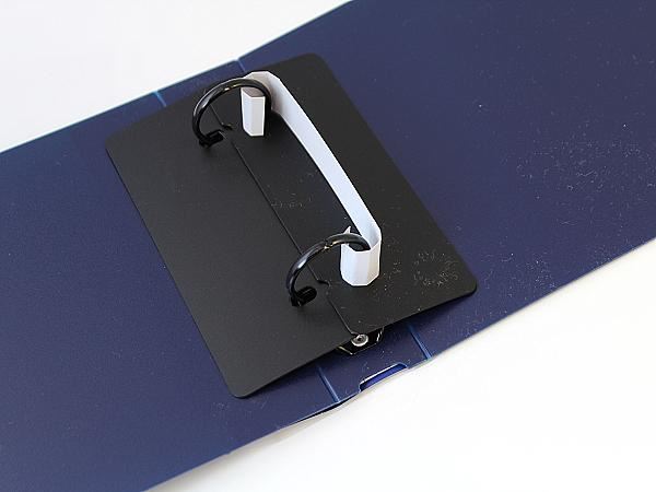 プラス 2リングファイル スーパーエコノミー 横型(E) A5-Eサイズ 2穴 収容枚数210枚 リング内径26mm 書類を保護するプロテクター付き 縦158×横240×背幅35mm FC-141RF ネイビー 84-661 傷や錆に強い黒メッキのとじ具 見開き閲覧でページがめくりやすいリング式ファイル