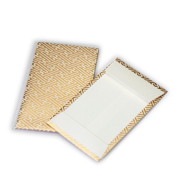 おとなのぽち袋 紗綾 ノ-AD35サイズ H82×W51mm 入数 3枚 仕様 汚れ防止パック付き(1枚) 特徴 10セットまとめ売り日本文様の「紗綾形」がとても縁起が良い落ち着いた雰囲気のおとなのぽち袋です。 この文様は「絶えず長く続くこと」 ということで家の繁栄や長寿などの意味を持ちます。 カードサイズなのでお財布に入れて備えておけば、心付けやお小遣いを渡したいと思ったときにサッと出して使えます。こちらの商品は同一商品5個までをゆうパケット1個口分の送料に設定しています。