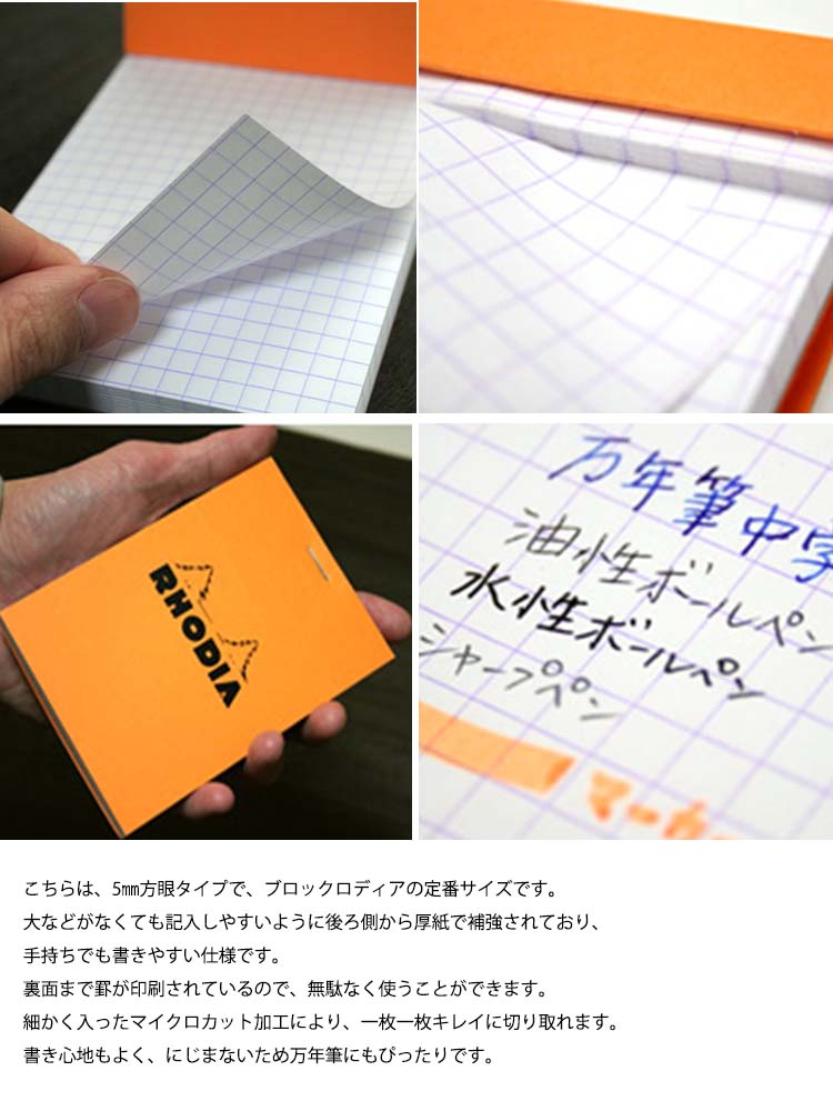 仕様商品名ロディア RHODIA ブロックロディアNo.11 5冊セット + 専用下敷き仕様・サイズ:7.4×10.5cm (A7)・ページ数:160ページ・用紙:5mm方眼・紙重量:80gバリエーション・オレンジ5mm方眼・ブラック5mm方眼・ホワイト5mm方眼・3色アソート5mm方眼備考※パッケージや仕様はメーカー要因により予告なく変更になる場合がございます。セットアイテムはこちら・ロディア RHODIA ブロックロディアNo.11 5冊セット + 専用下敷き ¥1,375ロディアのウェブノートはこちら・ロディア RHODIA ウェブノートブック Webnotebook A6サイズ ¥1,980・ロディア RHODIA ウェブノートブック Webnotebook A4サイズ ¥4,400・ロディア RHODIA ウェブノートブック Webnotebook A5サイズ ¥2,970ロディアのミーティングノートはこちら・ロディア RHODIA ロディアラマ ミーティングブック rhodiarama A5サイズ ¥3,300ロディアの筆記具はこちら・ロディア RHODIA スクリプト scRipt メカニカルペンシル シャープペンシル ¥2,750・ロディア RHODIA スクリプトマルチペン scRipt MULTI PEN 3in1 多機能ペン ¥4,400お中元、お歳暮、母の日、父の日、敬老の日、ブライダル、誕生日、記念日、恩師・上司へのギフトに文房具が喜ばれます。また、結婚内祝い、出産内祝い、合格祝い、就職祝い、卒業祝い、入園・入学祝い、昇進祝い、還暦祝いなどのお祝いのプレゼントや、販売促進の景品やギフトにも。デザイン文具やオフィス文具、学校で使える文房具、事務用品などの様々なステーショナリーのアウトレットや訳ありセール商品もご用意。商品への名入れやラッピングも行っています。文房具なら和気文具(ワキ文具)[tag:メモ帳][tag:ロディア]ラッピングはタイプがふたつあります。→翌日配送をご利用の際は必ずこちらのページをご確認ください。セットアイテムはこちらロディア ブロックロディアNo.11 5冊セット + 専用下敷き1,375 円ロディアのウェブノートはこちらウェブノートブック Webnotebook A6サイズ1,980 円イタリア製の合皮をまとった手に馴染む表紙ウェブノートブック Webnotebook A4サイズ4,400 円表紙はイタリア製の合皮でソフトな触り心地です。カバンの中で広がらないのが嬉しい「ゴムバンド付き」で持ち運びも快適。ぜひ、このフワッと感をご堪能くださいませ。ウェブノートブック Webnotebook A5サイズ2,970 円ヨーロッパやアメリカのロディアファンのあいだでは【Webbie】の愛称で親しまれているWebnotebook。ブロックメモのシンプルなデザインはそのままに、カバーにはカバンの中で広がらないのが嬉しい「ゴムバンド付き」で持ち運びも快適。表紙はイタリア製の合皮で覆ってあり、手に馴染むソフトな触り心地のノートです。ロディアのミーティングノートはこちらロディア RHODIA ロディアラマ ミーティングブック rhodiarama A5サイズ3,300 円ロディア公式だけの限定販売カラーを特別に入荷!再入荷なしの限定入荷です、売り切れる前にゲットお願いします。ロディアの筆記具はこちらロディア スクリプト シャープペンシル2,750 円フランスのお洒落なメモ「ロディア」が作ったシャープペン「ロディア scRipt(スクリプト)」です。メモと同じ色のアルミボディ、角ばった六角軸、そして、携帯性抜群のサイズ感全てがメモと一緒に使うことを前提としたロディアユーザーにはたまらない一本ですよ。ロディア スクリプトマルチペン 3in1 多機能ペン4,400 円フランスのお洒落なメモ、ロディアが作ったボールペンスクリプトシリーズの「多機能」ペン。メモと同じ色のアルミボディ、角ばった六角軸、そして、携帯性抜群のサイズ感、などスクリプトシリーズの良さはそのままにボールペン2色とシャープペンシル機能が追加された、ロディア好きにはたまらないマルチペンです。175