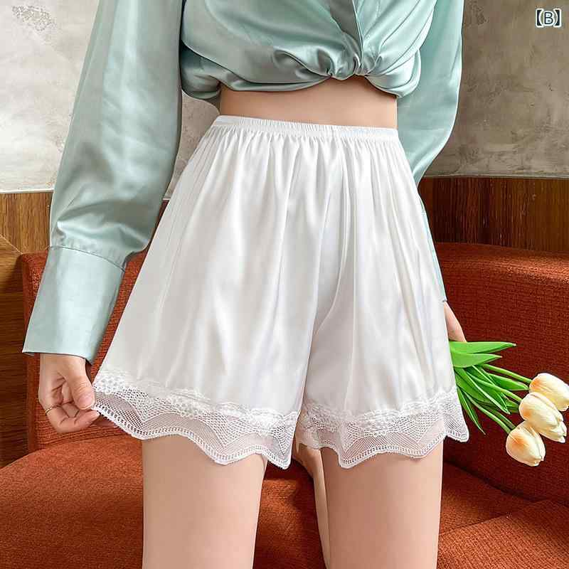 パンツ レディース 夏 薄手 大きいサイズ レース ショートパンツ ポリエステル 接触冷感 通気性 ルームウェア 部屋着(x2)