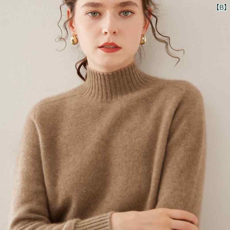 ニット レディース セーター ウール 長袖 厚手 トップス プルオーバー 無地 ハーフネック 秋冬 普段使い デイリー 日韓スタイル カジュアル 青 グレー ピンク 赤・カテゴリ: ニット・セーター・柄: 無地・スタイル: カジュアル・袖丈: 長袖・ネックライン: ハーフハイネック・着丈: 普通丈 (50cm超65cm以下)・厚さ: 厚手・メイン素材: .ウール・メイン素材混紡率: 30%未満 (), 90%-95% (ウール)・フィット: レギュラー・カラー: 青みがかったベージュ, 青みがかったキャメル, エビピンク, 月光グレー, チェリーレッド・サイズ: M, L, XL・袖タイプ: レギュラー袖・対象: 大人, 女性