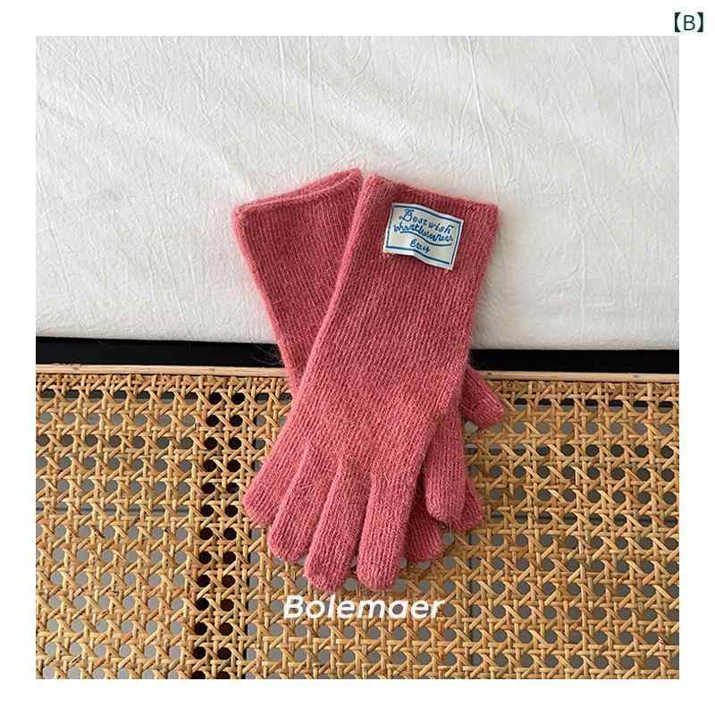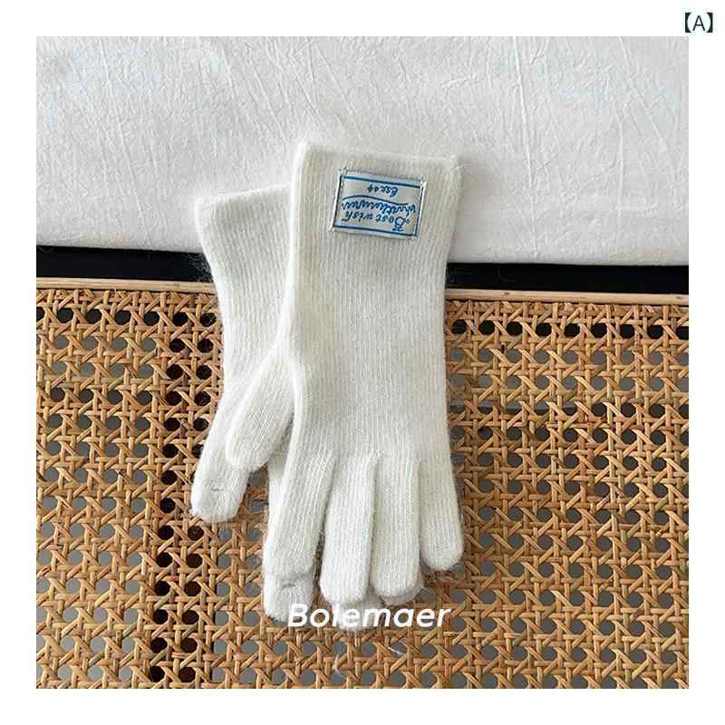 手袋 マフラー 2点セット 韓国風 レターパッチ ニット手袋 細身マフラー レディース ホワイト手袋 ピンク手袋 ブルー手袋 ブラック手袋 ライトグレー手袋 ダークグレー手袋 カーキ手袋 レッド手袋 ホワイトマフラー ピンクマフラー ブルーマフラー ブラ