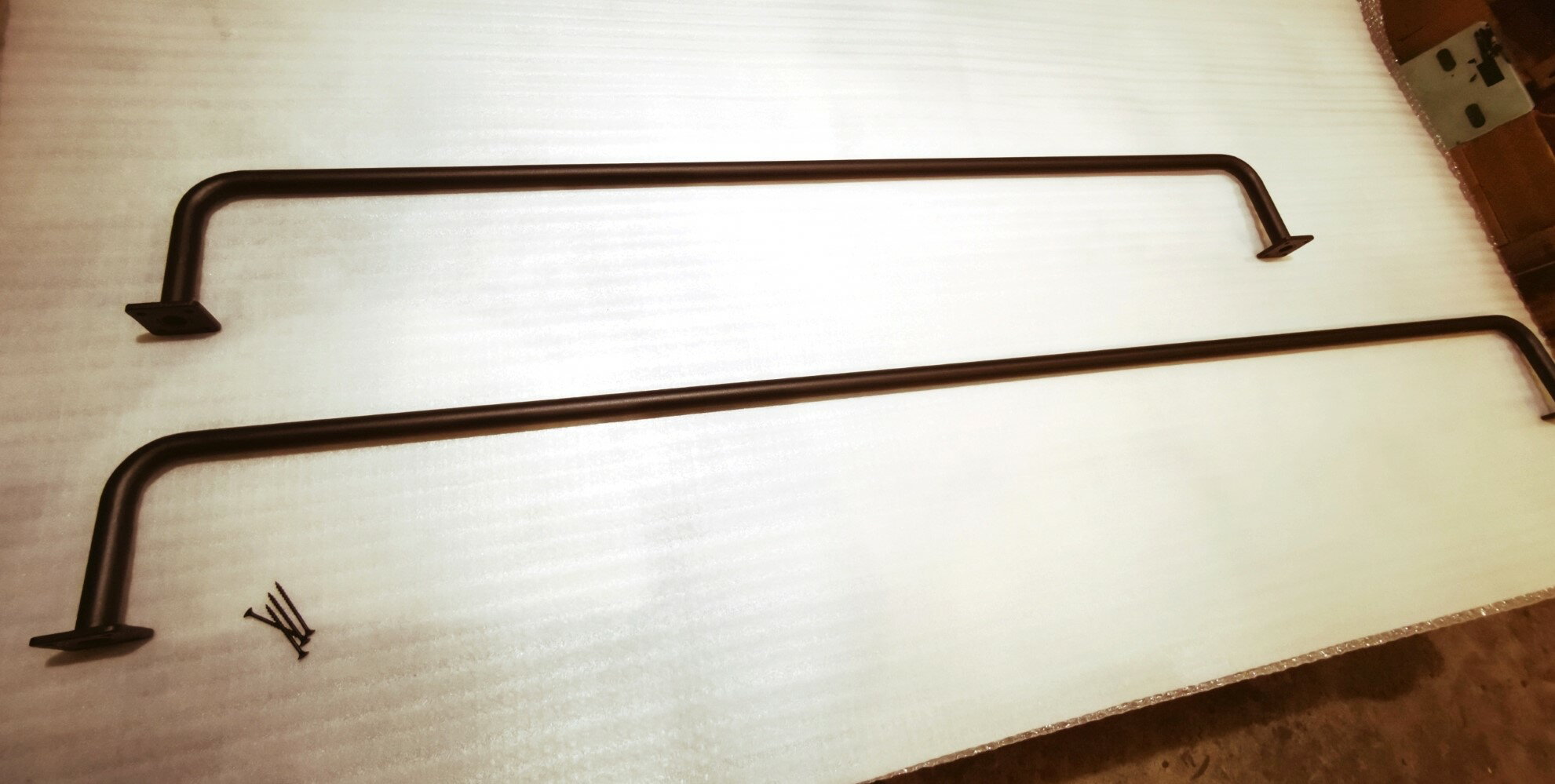・天井物干しバーを制作致します。 ・天井からの高さ・縦棒の数・縦棒の間隔を、ご自由にご指定頂けます。 (ご注文時に、メモをご送信頂くのが早いです)(寸法により、価格が変わります) ・全体を、21.7φのパイプで制作します。 ・最大長さ360cmまで制作可能です。(写真の長さは、260cmです) ・写真の梁にビス止めした場合、人がぶら下がっても大丈夫でした。かなりの洗濯物を掛ける事が可能です。(設置場所や、天井の強度に左右されますので、丈夫な梁のある個所にご設置下さい。) ・『片側は壁に設置したい!』、『下地に合わせた台座にしたい!』、『棒を太くして強度を出したい!』など、できる限りご要望にお答えしております。 まずはお気軽にご相談ください。 材質/鉄 [ベースのパイプ-21.6φ] 色/黒色 制作工房/宮崎県 価格表 横幅+高さ合計サイズ(高さ600mm迄): 価格(税込) 〜140cm(高さ+幅)迄 11,000円 〜180cm(高さ+幅)迄 13000円 〜220cm(高さ+幅)迄 22000円 〜260cm(高さ+幅)迄 25000円 〜300cm(高さ+幅)迄 28000円 〜340cm(高さ+幅)迄 34000円 〜380cm(高さ+幅)迄 37000円 〜400cm(高さ+幅)迄 40000円 400cm(高さ+幅)〜 要・お見積もり