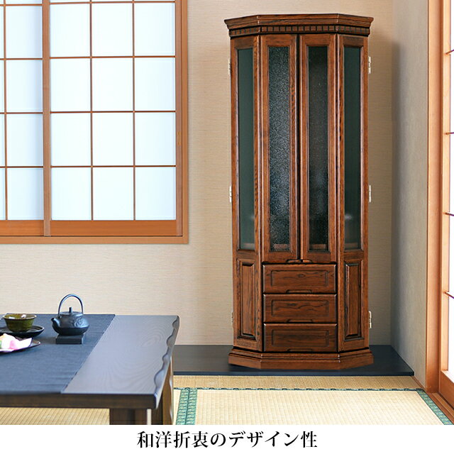 日本製 モダン アンティーク仏壇【デイリーダーク 46×20号】 「インテリアとの調和」がデザインコンセプトのアンティーク調 国産モダン仏壇 商品説明 高級感あふれる国産楢材を採用した日本製仏壇 力強く美しい木目が印象的な国産の高級素材を使用したモダン仏壇。深みのあるダークカラーも相まって気品と重厚感あふれるお仏壇となっております。 和洋折衷のデザイン性 インテリアと調和しやすい落ち着きのある色味がお部屋にも違和感なく馴染み、温かい雰囲気を作ります。洋室はもちろん、和室にも違和感なく溶け込みます。 美しい木目が内陣を華やかに彩る 内陣は広々としており、背の高い仏像や掛け軸をご安置できます。美しい木目が特徴的な“ナラ”をお仏壇の主材とし、木の温もりを感じられる内陣となっております。 インテリア性を上げるガラス扉 お仏壇扉部分にはカスミガラスを用いる事で扉を閉めると内陣内がぼんやりと浮かび上がり完全には見えない設計となっております。人が集まるリビングなどにも違和感なく設置できるのがポイントです。 職人による伝統と技術が詰まった欄間 お仏壇の欄間部分に配された凹凸のラインは立体感を作り出し高級感を引き出すデザインです。 スライド式仏具板 便利なスライド式の仏具置きとなっております。仏具をゆったり収納したいときは手前に引いて、スペースを広く使うことが可能です。 使い勝手の良い下段収納 扉を閉めたまま使える3杯の引き出し。お線香やロウソクなどのお仏壇周りの小物をすっきり収納できる。とても便利な引き出しです。 縦に広い多目的収納空間 引き出し収納の両サイドには多目的な収納スペースを完備。お仏壇の清掃用品やお線香のストックなどの収納にも活かせるマルチ収納です。 ウレタン塗装 木の表面に薄い膜で覆った『ウレタン塗装』を採用。耐久性に優れています。 環境に優しいLEDライト お仏壇の天井部分にはLEDライトを採用。長寿命で消費電力は従来の白熱球とくらべて1/8程で環境に優しいです。紫外線が出ないことからお仏壇や掛け軸が劣化しにくいのもポイントです。 正面表面材 笠・台輪 :ナラ 無垢材 戸板・扉 :ナラ 無垢材 主芯材 木質繊維板 表面仕上げ ウレタン仕上げ 収納・機能 取外し式本尊台/仏具板/引き出し収納(3杯)/両サイド収納スペース(2杯)かたみ箱/隠し収納(2杯)/LEDライト 原産国 日本 寸法 高さ140.5cm × 幅60.5cm × 奥行46cm 重量 約56kg 宗派 すべてのご宗派でお祀りいただけます。 曹洞宗 真言宗 浄土真宗 西 東 本願寺派 大谷派 日蓮宗 浄土宗 時宗 天台宗 臨済宗 妙心寺派 禅宗 無宗派 他 備考 ※お仏壇のみの販売です。仏具類は付属しません。 ※実際のサイズと若干異なる場合がございます。 ※実際の商品と色味が若干異なって見える場合がございます。 ※商品仕様につきましては予告なく変更することがございます。予めご了承ください。 ※楽天のシステムの仕様上金額の変更は、買い物かご内では反映されません。 ご購入確定後、弊社からの2通目のメールにて訂正した金額をお知らせいたします。 ■お位牌・仏具の推奨サイズ 仏像 30cm前後 掛軸 30代 位牌 4.0〜5.0寸 仏具 3.0〜3.5寸 メーカー希望小売価格はメーカーカタログに基づいて掲載しています高級家具にも使用される国産楢(ナラ)を贅沢に使用したおしゃれでモダンな国産仏壇です。美しい木目が特徴的な内陣は、広々としており、背の高い仏像や掛け軸を安置できます。内陣中央部には、小物の収納に便利な“かたみ箱”が完備されており、思い出の品々を補完できます。扉部分にはカスミガラスを採用し、扉を閉めると内陣がぼんやりと浮かび上がるヴィンテージ家具のような雰囲気を演出。リビングなど人が集まる場所にも違和感なく設置できます。 職人による伝統技術が詰まった欄間は、凹凸のラインで立体感を作り出し高級感を引き出しています。下段には、扉を閉めたまま使える3杯の引き出しや、多目的な収納スペースを完備。スライド式の仏具置きは、仏具をゆったりと配置できるよう手前に引いてスペースを広く使うことが可能です。LED照明を標準装備し、紫外線を出さないため劣化を防ぎ長寿命で交換の手間が省けます。ウレタン塗装でキズや汚れが付きにくく、末永くお使いいただける耐久性を備えています。握りやすい取っ手部分や取り外し可能な本尊台など、使いやすさへのこだわりも満載。マンションにも対応したこの国産仏壇は、現代のライフスタイルにぴったりの逸品です。
