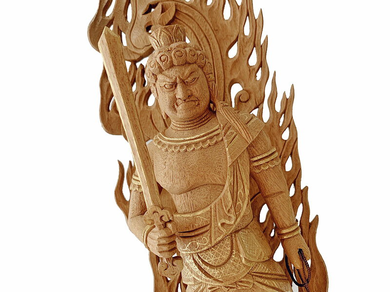 仏像 楠木 不動明王 金泥書 3.0寸 木彫 【真言宗】