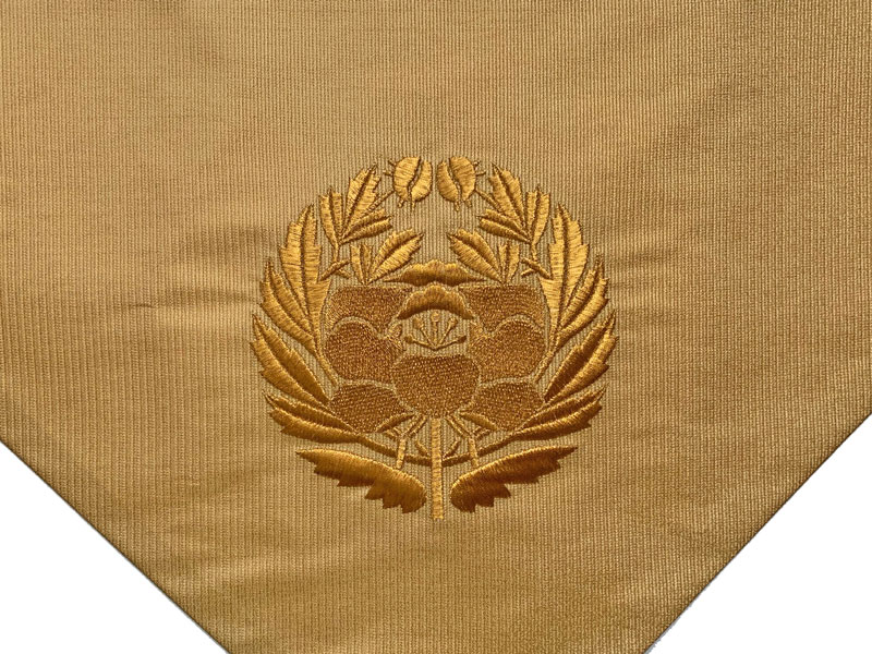 【 興正寺 】 仏具 三角打敷 金襴錦地 盛上 興正寺紋 刺繍 金 70代