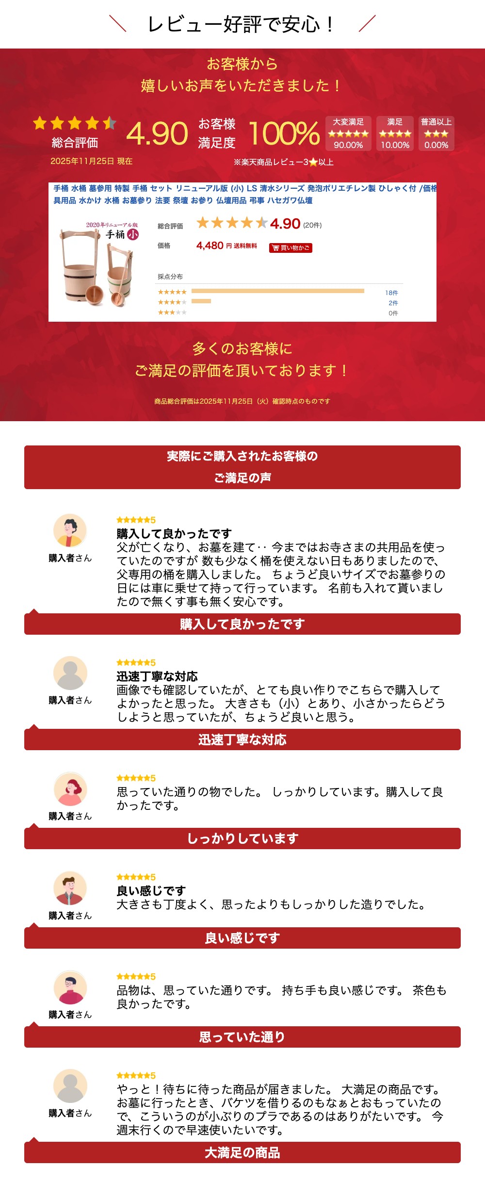 よく一緒に購入されている商品特製 手桶 セット 清水シリーズ専用 名入れ代2,080円 御墓参り でお使いいただく手桶です。2020年夏シーズンに 持ち手の形状をより持ちやすく、タガを丈夫に改良しました。 一般的に多く使われているサイズです。 プラスチック製でお手ごろの価格で丈夫です。 桶の外側表面はツルツルではなく、木の肌のように、縦の凹凸模様があり木製の手桶のように、箍も2本付いています。 手桶とひしゃくのセットでの販売です。 [桶のサイズ] 総高42×胴径20センチ 本体深さ:19センチ [ひしゃくのサイズ] 長さ45センチ [材質] プラスチック製 [納期] ご注文から2〜5営業日で発送。 [商品区分: 手桶 ] 類似商品はこちら手桶 水桶 墓参用 特製 手桶 セット 大 L5,380円手桶 木製 さわら材 木製手桶 柄杓 付 21,800円手桶セット km /手桶 手おけ お墓参り 12,800円特製 手桶 セット 清水シリーズ専用 名入れ代2,080円手桶セット ・専用オプション 紋書き・名入れ 2,200円PC 手桶用 ひしゃく 清水シリーズ用 柄杓 600円手桶 ひしゃく付 手桶セット ミニ手桶Bタイプ4,280円掛け軸 スタンド 掛軸 三幅 セット /仏像29,000円瑞竜 2.3号 セット /仏具用品 法要 7,480円新着商品はこちら2025/11/25贈答用線香 お供え ギフトに 人気 薫寿堂 5,500円2025/11/24玉初堂 高級線香 進物用 沈水 清閑 短寸8把10,800円2025/11/20仏壇 地袋付仏間用 京型 彫欄間蒔絵入六角 菖742,000円再販商品はこちら2025/11/20法名軸 新金上100代 紺色 / 金襴蓮華表3,780円2025/11/19納柩用品 副葬品 釣り具セット 2本入 奥行136,300円2025/11/5小常花 アルミ製 3号5本立 金色 仏具5,280円関連商品真榊 (まさかき) 小豆 24センチ 丸台 (1対) 台棒プラスチック...電子線香 3本立(3寸) 陶器製香炉付 茶色 乾電池式 電気 線香 ...位牌 戒名彫り代 文字彫代 彫り代[金色文字・青紺色]1体分 文字入れ...4,480円4,380円4,580円2025/11/25 更新お墓参りに使いやすいサイズの 手桶 水桶 ひしゃく付き