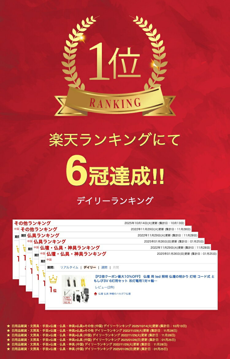 仏壇 用 led 照明 仏壇の明かり 灯明 コード式 ともしび3V 6灯用セット 吊灯篭用1対+輪灯用1対+ろうそく灯1対 六灯セット 電装品 仏壇 led 電気