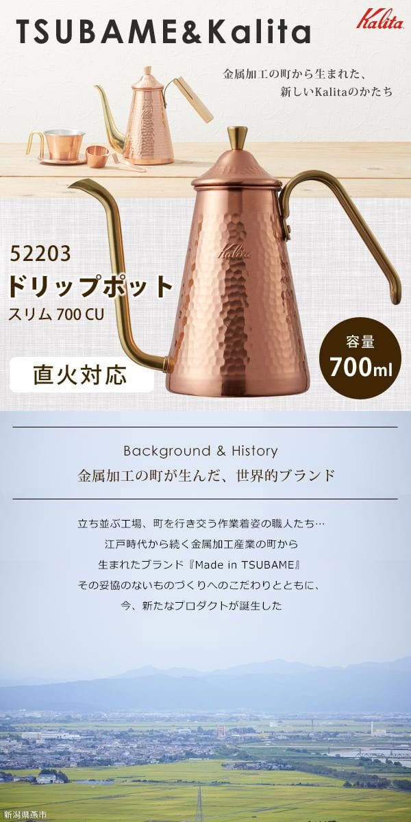カリタ Kalita コーヒーポット 銅製 700ml 細口 ノズル 直火 日本製 燕 スリム700CU ドリップポット ドリップケトル コーヒー ケトル やかん 喫茶店 カフェ キャンプ アウトドア #52203