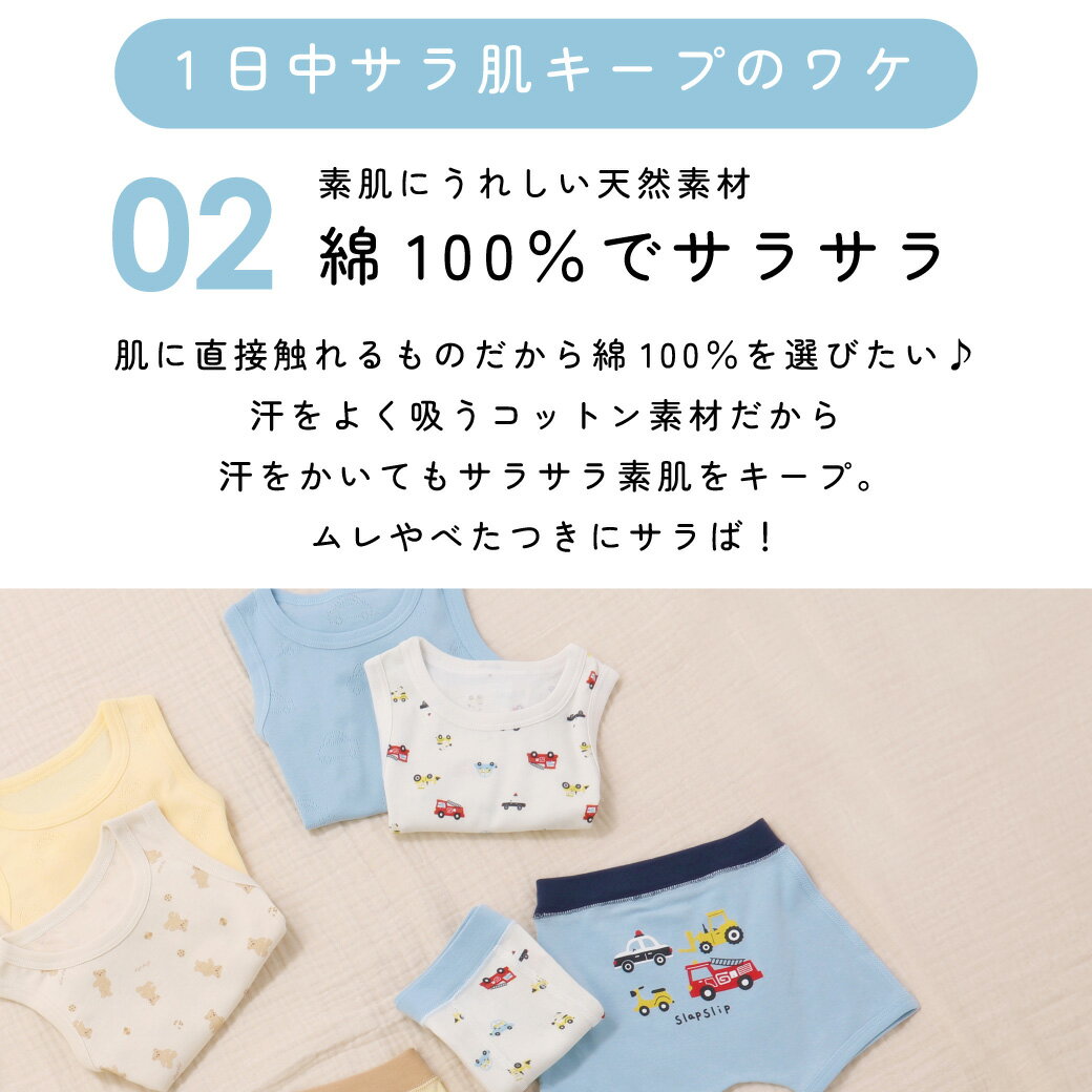 商品名SLAP SLIP 【スララク/吸汗速乾】綿100%汗とムレにサラば!わくわくサラッとボクサーパンツ2枚セット(100~130cm)商品番号1818-79532商品説明-25SS-快適なはき心地のボクサーパンツ2点セット。■デザイン男の子がワクワクするデザインのボクサーパンツ。それぞれモチーフが違う2色展開です。【はたらくくるま】POPでカラフルなはたらくくるまの総柄、セットはおしりにはたらくくるまをオンしたカッコいいデザイン。【クマとクッキー】優しいカラーのクマさんとクッキーの総柄がかわいい。セットになっているのはいろんなクッキーに囲まれたクマさんどれもウエスト部分のゴムが配色になっているのがおしゃれなポイント。下着選びも楽しくなっちゃうこと間違いなし!洗い替えにも便利な2点セットのアイテムになっています。ネームタグが外についているから、敏感肌なキッズもストレスフリー。■素材/機能肌に多く触れるメインの生地は綿100%!汗を吸ってすぐ乾く「吸汗速乾」機能付きだから、ムレやベタつきを感じにくいのがうれしい。乾きやすいからお洗濯もラクラクでみんなニコニコ。▼お揃い総柄と同じプリント柄のタンクトップもあるからセットでの着用も◎1818-79510:タンクトップ2点セット※吸汗速乾は第三者機関認証済です。※柄の出方は生地の裁断により一点一点異なります。25春夏アイテム【2025年 5-6月のテーマ / &playful】知育モチーフやカラフルな柄、キラキラ...子ども心をくすぐる素材感。暑い夏でも元気いっぱい!思いっきり遊んでもずっと快適に!【2025 SPRING / SUMMER &delightful-楽しい、うれしい、愉快で、快適-】人の感覚に心地いいものや心がはずむもの・・・今らしさを取り入れて快適にファッション楽しめるように永く愛せる商品を展開します。【SLAP SLIP(スラップ スリップ)】〜子どもの欲しいをカタチに〜ヨーロッパのこどものように子どもらしい今しか着れないナチュラルなかわいさを提案どこか上品で清楚感漂うフレンチカジュアルはいつものコーディネートをさりげなく格上げ素材(本体)綿100% リブ:綿95% ポリウレタン5%実寸100cm:ウエスト19.5 パンツ丈18 裾幅11110cm:ウエスト20 パンツ丈18.5 裾幅11.5120cm:ウエスト21 パンツ丈19.5 裾幅12130cm:ウエスト22.5 パンツ丈20 裾幅12.5ブランドSLAP SLIPカラーはたらくくるま、クマとクッキー 原産国 中国製造元株式会社べべ(BEBE)メーカー希望小売価格はメーカー商品タグに基づいて掲載しています▼カテゴリーから探す▼ ◆ギフト用途誕生日 プレゼント お祝い 人気 人気ギフト バースデー 七五三 記念 おすすめ 記念日 ブランド 人気ブランド クリスマス クリスマスプレゼント 通販 おしゃれ 贈り物 孫 もらって嬉しい 誕生 双子 お揃い 姉妹 兄弟