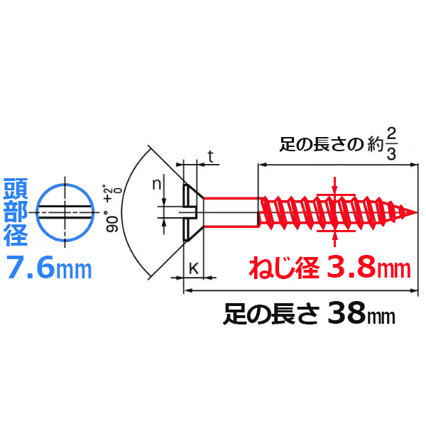 BS (真鍮、黄銅)(−)皿木ねじM3.8X38【40本入り】生地ねじ径3.8mm×長さ38mm (頭部径7.6mm)皿木ネジ マイナスネジ ビスアンティークねじ アンティークネジ【ネコポス360円対応】