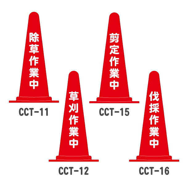 標語入りカラーコーン赤【除草作業中/草刈作業中/剪定作業中/伐採作業中】(三角コーン 三角ポール パイロン ラバーコーン 工事現場 工事用品 保安用品 文字入れ 名前入り 文字入りコーン 駐車禁止標識 安全標識 案内標識)