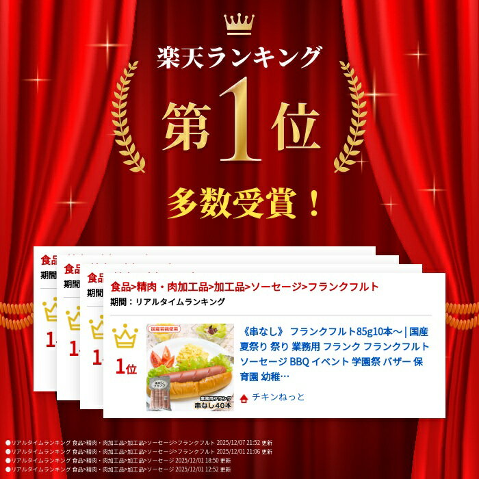 ※お客様へ※ 佐川急便指定の場合、【会社様・学校様】等の個人宅様以外の送付先の場合【時間帯指定】をご利用頂けません。予めご了承頂きますようお願い申し上げます。 ※同梱総重量10kg以上の時は、別途送料加算となります。 その際はご注文内容確認メールでご連絡いたします。 ■10本〜 1本当たり86円〜(税込) 商品説明名称フランクフルトソーセージ 原材料名鶏肉(国産)、豚脂肪(国産)、粉末状植物性たんぱく、糖類(砂糖、ぶどう糖、水あめ、乳糖)、食塩、ばれいしょ繊維、香辛料、食用油脂/加工デンプン、調味料(アミノ酸等)、リン酸塩(Na)、保存料(ソルビン酸(K))、重曹、酸化防止剤(V.C)、pH調整剤、発色剤(亜硝酸Na)、チアミン、着色料(コチニール)、香辛料抽出物、(一部に乳成分・牛肉・大豆・鶏肉・豚肉を含む)内容量85g×10本〜賞味期限2027.07【冷凍】保存方法 −15℃以下で保存してください 商品特徴 1袋 85g×10本入り、串なしフランクです。加熱済み商品なので温めるだけでお召し上がり頂けます。両面切れ目入りなので、加熱後、綺麗に仕上がります。解凍後、レンジ、ボイル、フライ、焼き等お好みで加熱して下さい。 ※袋は、湯煎対応のものではございません。袋から出して調理してください。 ※ホットドック用に便利です。製造者プライフーズ株式会社 三沢加工食品工場青森県三沢市大津二丁目112番1号販売者プライフーズ株式会社 チキンねっと青森県八戸市北白山台2丁目6番30号 季節のご挨拶 御正月 お正月 御年賀 お年賀 御年始 母の日 父の日 初盆 お盆 御中元 お中元 お彼岸 残暑御見舞 残暑見舞い 敬老の日 寒中お見舞 クリスマス クリスマスプレゼント お歳暮 御歳暮 春夏秋冬 プチギフト お土産 ゴールデンウィーク GW 帰省土産 バレンタインデー バレンタインデイ ホワイトデー ホワイトデイ お花見 ひな祭り 端午の節句 こどもの日 唐揚げ ナゲット パーティー ギフト プレゼント 用途 業務用 仕入れ 大量 イベント 中食 外食 レストラン 居酒屋 カフェ 学園際 模擬店 バザー お祭り 夏祭り 盆踊り 文化祭 イベント 運動会の景品・ゴルフコンペ等景品 ゴルフコンペ コンペ景品 景品 賞品 粗品 粗品・贈答品 二次会景品 新歓 歓迎 送迎 新年会 忘年会 二次会 記念品 法人様 おかず お弁当 晩酌 おつまみ 朝ごはん 朝ご飯 朝飯 朝食 昼ごはん 昼ご飯 昼飯 昼食 夜ごはん 夜ご飯 夜飯 夜食 おかず お弁当 おやつ パーティ 運動会 ピクニック お遊戯 大会 遠征 高体連 中体連 ピクニック おでかけ 登山 ハイキング 海 バーベキュー 川 アウトドア キャンプ 山飯 プレゼント ギフト 贈り物 お取り寄せグルメ グルメ 節句 お正月 誕生日 クリスマス ゴールデンウィーク 子供の日 端午の節句 ひな祭り ビアガーデン 新年会 忘年会 景品 おつまみ ギフト プレゼント パーティー 国産 国産鶏肉 日本国産 安心 安全 鶏肉 鳥肉 とりにく 鶏 鳥 国産 安心 便利 簡単 ママお助け 夏休みお助け 晩ご飯の一品 上質 食べ物 お取り寄せ 人気 食品 おすすめ インスタ インスタ映え ショップ紹介 チキンねっとは、主に鶏肉の生産、製造、販売までを一貫体制で行うプライフーズのお店です。プライフーズ株式会社は「お客様に喜ばれる製品を提供する」という企業理念を持ち、安全でおいしい食品の提供を通じて、社会に貢献することを目指しています。鶏肉一筋50年。鶏肉のことならおまかせください。鶏肉をはじめ、唐揚げ 焼き鳥 ナゲット フランクフルト サラダチキン 揚げ物 レンチン惣菜 焼き物 蒸し物 ミールキット グルメセット お惣菜 和食惣菜 洋食惣菜 中華惣菜 宅配惣菜 宅配おかず 常備菜 和食 洋食 和惣菜 グルメ食品 グルメセット 福袋 まとめ買いにも適した詰め合わせ ご飯のお供 惣菜セットなどを取扱しているお店です。業務用訳あり食品 おつまみ 1000円ポッキリ 1000円コミコミ 送料無料 グルメ食品 産直 ポイント消化 送料無 お試しセット売れ筋 人気ランキング 上位 など様々なバラエティセット おかず セット 簡単調理 便利 冷凍食品 真空パック お得な商品 お買い物マラソン マラソン対象品 訳あり食品 1000円 送料無料 買いまわり 買い周り 買い回り 買い回り対象 かいまわり) 酒のさかな つまみ 晩酌おつまみ 簡単総菜 時短ごはんを揃えております。ランキング上位商品、人気商品、わけあり 訳ありアウトレット商品 ワケあり 値引き 割引 お得 最安商品はお問い合わせが多く数に限りがありますので、お早目にお買い求めください。ランキング上位商品 人気商品訳ありアウトレット商品 値引き 割引 ポイント5倍 ポイント10倍 ポイント20倍、お得 最安商品 グルメ お取り寄せは問い合わせが多く在庫がなくなる場合にはご了承ください。チキンネット ちきんねっと ちきんネット<お知らせ> こちらページでのドッグスリーブ販売は終了しましたm(__)mドッグスリーブご入用のお客様はこちらのページより100枚単位で購入可能です。 ■業務用フランクフルトはこちら ■チーズ入りフランクフルトはこちら 【重要】内