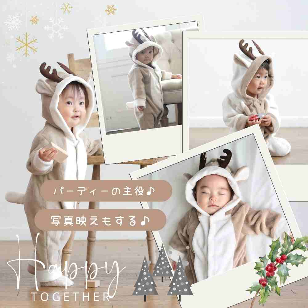 【最大1500円OFF先取りブラックセール】 トナカイ 着ぐるみ ロンパース コスチューム ベビー 衣装 キッズ クリスマス サンタ もこもこ フォト コスプレ キッズ トナカイ ベビー服 子供 赤ちゃん 男の子 女の子 サンタクロース サンタさん 60 70 80 90