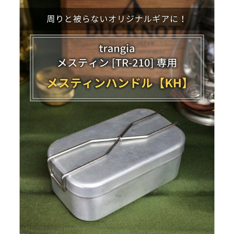 周りと被らないオリジナルギアに! trangiaメスティン[TR-210]専用メスティンハンドル【KH】 ハンドルで蓋を抑えることで蓋の浮き上がりを防止できます。 熱伝導率が低いのがポイントです。 持ち手が長く、熱源と距離を取れるため手が熱くなりにくいです。持ち運びの際にも蓋が外れにくくストレスフリー! 【装着方法】 1.純正のハンドルを両側にぐっと開き片方ずつ外します。 2.同じように【KH】の両側を開き片方ずつはめ込めば付け替え完了! 【ATTENTION】 ※ハンドルが蓋に接触するためメスティンにアタリがつきます。 気になる方は購入をお控えください。 ※メスティンの状態などにより本製品がはめにくい場合がございます。 しっかりとはまった状態であることを確認してからご使用ください。 素材:ステンレス サイズ:約幅3.5×高さ17.2×奥行2.8cm 重量:約28g ※こちらの商品は店舗と在庫を共有しています。 ご注文時に在庫があっても、商品発送準備の段階で在庫が無い場合があります。
