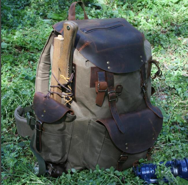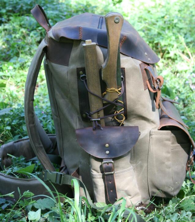 【ハンドメイド】ブッシュクラフト レザーキャンバスバックパック ラックサック ソロ デュオ 45L 登山