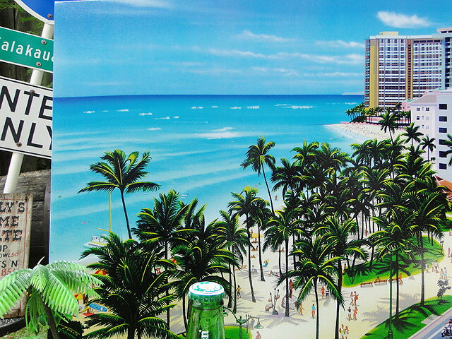 ハワイアン キャンバスアート (ワイキキビーチ2019) 栗山義勝 アメリカン雑貨 アメリカ雑貨 ハワイアン雑貨 ハワイ雑貨 ハワイグッズ ハワイアングッズ おしゃれ ショップインテリア