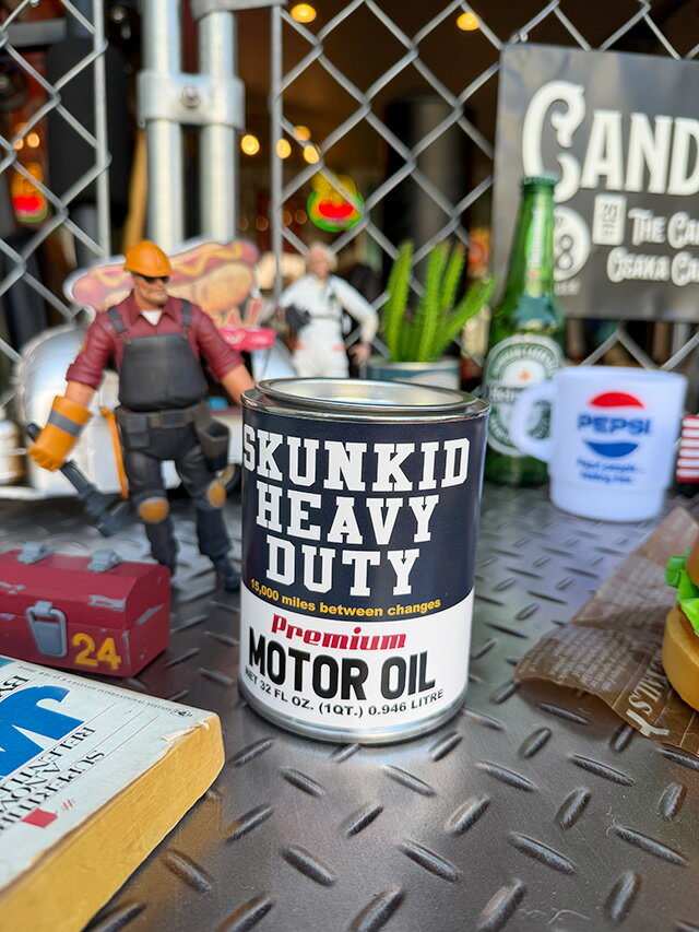 よく一緒に購入されている商品シャイネス スカンキッド フリークロス 86c1,980円アメ雑好きならひとつは持ってるだろう「カルチャーマート」。 そのデザイナーであったTARO KAMIKO氏が新たに立ち上げたブランドが「SHYNESS(シャイネス)」なんです。 今回キャンディタワーに届いたのは、ヴィンテージのモーターオイル缶を思わせる「SKUNKID MOTOR OIL」のオリジナル缶入りバンダナ。 手にした瞬間、まるで昔のガソリンスタンドの片隅に並んでいた「オイル缶」を思わせる・・・・ これはもう「開ける前からカッコいい」ってヤツです。 実はこれ、バンダナがオリジナル缶の中に収納されているというユニークな仕様なの! 缶を開けると、クラシックなペンシルバニアオイルのロゴや、陽気なスカンクキャラクター「SKUNKID」が躍る、カスタムアートのようなバンダナが現れるんです。 ブラックベースに、レッドとターコイズブルーで構成されたグラフィックは、まさに「ガレージの壁に飾りたくなる」仕上がりになってるからねー テーブルに敷けば、工具やフィギュアとの相性も抜群だし! 単なる雑貨じゃなくて、「使いながら飾れるプロダクト」として成立しているのが、TARO KAMIKO氏の真骨頂なのだ! 「古き良きアメリカのグリース感を、現代のガレージにもう一度」という想いのもとに生まれたシャイネス。 カルチャーマートで培ったレトロモダンのセンスと、キャンディタワーが愛してやまないアメリカン・ガレージカルチャーが、見事に融合した逸品! ヴィンテージオイル缶の世界観をモチーフにしながらも、どこかユーモラスで、手に取る人の心をくすぐる。 シャイネスは、ただのアメ雑ブランドじゃない。 「日常に少しのストーリーを足す」——そんなカルチャーを感じるブランドです( ̄ー ̄)ニヤリ☆ サイズ:横53cm×縦53cm(バンダナ) サイズ:直径8.6cm×高さ10.5cm(缶)類似商品はこちらビーバス&バットヘッド バンダナ アメリカン880円グレイトフルデッド ダンシングベアー バンダナ880円ビーバス&バットヘッド バンダナ アメリカン880円カリフォルニアレーズン バンダナ アメリカン880円カリフォルニアレーズン バンダナ アメリカン880円グレイトフルデッド ダンシングベアー バンダナ880円ODD SOX オッドソックス ウェブ ベルト2,860円シャイネス スカンキッド マグネット アメリカ660円ガーフィールド バンダナ アメリカン雑貨 ア880円新着商品はこちら2025/11/27ショットガンの薬きょう型 灰皿 ショットシェル1,650円2025/11/27Zippo ウィンディ ジッポーライター アメ11,000円2025/11/27バンソン アッシュシリンダー 卓上灰皿 アメ4,400円再入荷はこちら2025/11/27HONDA LEDロープネオンサイン ボトルキ7,480円2025/11/27コカ・コーラ プレイス バーマット ロング 4,180円2025/11/27フィリックス シボレー サイド看板 両面プリン4,180円2025/11/27 更新
