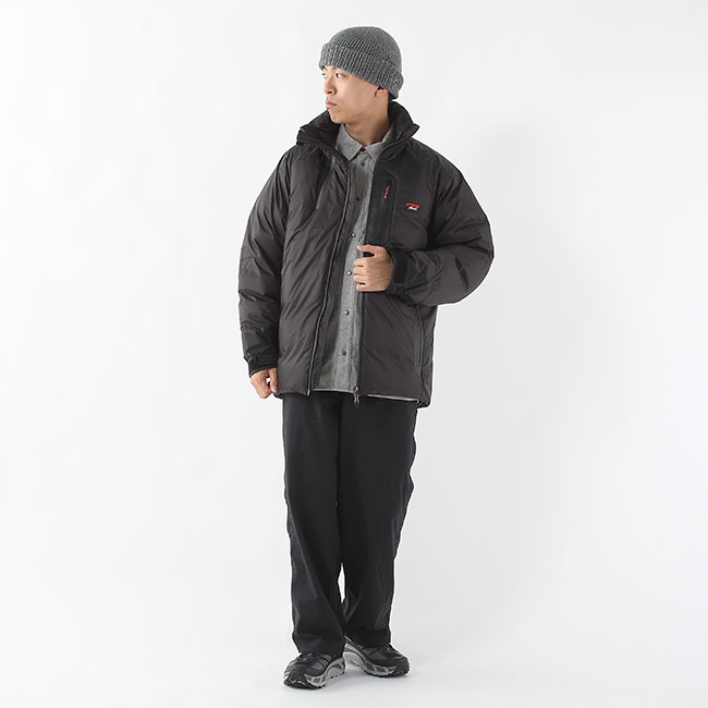 日本製、ミカミのスタンドカラーモデル 滋賀県・野洲市にある「三上山(近江富士)」にちなんで名付けられた、特別仕様モデル「AURORA TEX LIGHT DOWN JACKET MIKAMI」のスタンドカラータイプ。 長年のスリーピングバッグ研究で培った技術を活かし、ナンガの最高スペックを結集したフラッグシップダウンジャケットとなります。 【すっきり見せて快適、スタンドカラータイプ】。 すっきりとした印象を与えるスタンドカラーデザインは、フードがない分、首まわりがもたつかず、レイヤードやアウターとの相性も抜群。 アクティブな動きにも干渉せず、すっきりと着こなせます。 特徴的な首元のサイドジップは、開くとメッシュの襟となりベンチレーション機能に。 デザインの変化を楽しみながら、汗を素早く蒸発させ、気化熱によって体温調節を促します。 効率的に外部にムレを逃がすので長時間快適な着心地が続きます。 【優れた防水・透湿性と軽量性】。 NANGAが独自に開発した、防水透湿素材AURORA TEXm² LIGHTを採用。 15dnの極薄ナイロンながら、耐水圧20,394mm・透湿性24,116g/m²/24hの高性能を実現。 裏地には10dnのリサイクルナイロンを使用し、柔らかな着心地と高い保温効率を両立します。 スキーやスノーボード、高山登山などのウィンタースポーツや冒険活動に最適。 冬のアウトドア活動をより快適に、安全に楽しむためのアイテムとして、活躍します。 【高品質グースダウン「SPDX」封入】。 860FP(フィルパワー)の高品質羽毛SPDX(ポーランド産グースダウン)を180g封入。 保温性を高めるために、ナンガのスリーピングバッグで採用されている※ボックスキルト構造を使用しています。 寒さをより感じやすい背中部分に採用し、抜群の保温力を誇ります。 ナンガの技術を結集した、MIKAMIラインならではの設計です。 【着心地と機能性を高めるディテール】。 胸ポケットの底面が本体から離れるような独特な構造になっており、ポケットの中身が体に直接干渉しないため、着心地にも配慮しています。 さらに、腕部分は、中の羽毛が潰れないような工夫がされた、ステッチ(縫製)になっています。 また、袖口のベルクロ、裾のドローコードでも温度調整や防水防風性能を向上させることができます。 ※ボックスキルト構造。 ダウンの保温力を最大限に引き出すための構造。 通気性のあるメッシュを表地と裏地の間に挟み、縦横にボックス状の仕切りを設けることで、羽毛の片寄りを防ぎながら効率よく暖かさを閉じ込めます。 【 SPEC /製品仕様 】■ブランド名:NANGA ■商品名:オーロラテックスライトスタンドカラーダウンジャケットミカミ ■商品型番:ND2441-1A101 ■カラー:ブラック,コヨーテ/カーキ ■サイズ:S,M,L ■素材: 表生地/15dn オーロラテックス®ライト 裏生地/10dn リサイクルナイロン 中綿/SPDX(ポーランド産グースダウン 93-7% 860FP) ■重量:ダウン量/150g ■生産国:日本 ■特徴: ・極上の保温性と軽量性を兼ね備えた、日本製モデル ・防水透湿素材「AURORA TEX® LIGHT」採用(耐水圧20,394mm / 透湿性24,116g/m²/24h) ・高品質ポーランド産グースダウン「SPDX(860FP)」を150g封入 ・首元のベンチレーションZIPで熱気を逃がし、長時間でも快適■広告文責:株式会社カンパネラ※PCモニター環境により画像の色合いが若干異なる場合がございます。ご了承ください。※当店では、正規のルートから仕入れをおこなった商品を取り扱っております。※サイズガイドはこちら