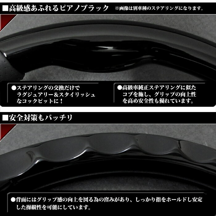 N-BOX NBOX カスタム エヌボックス JF3 JF4 ステアリング ハンドル グリップ コブ付 パンチングレザー 合成皮革 ガングリップ ピアノブラック 車 パーツ カスタム 車用品 カー用品 FJ4933