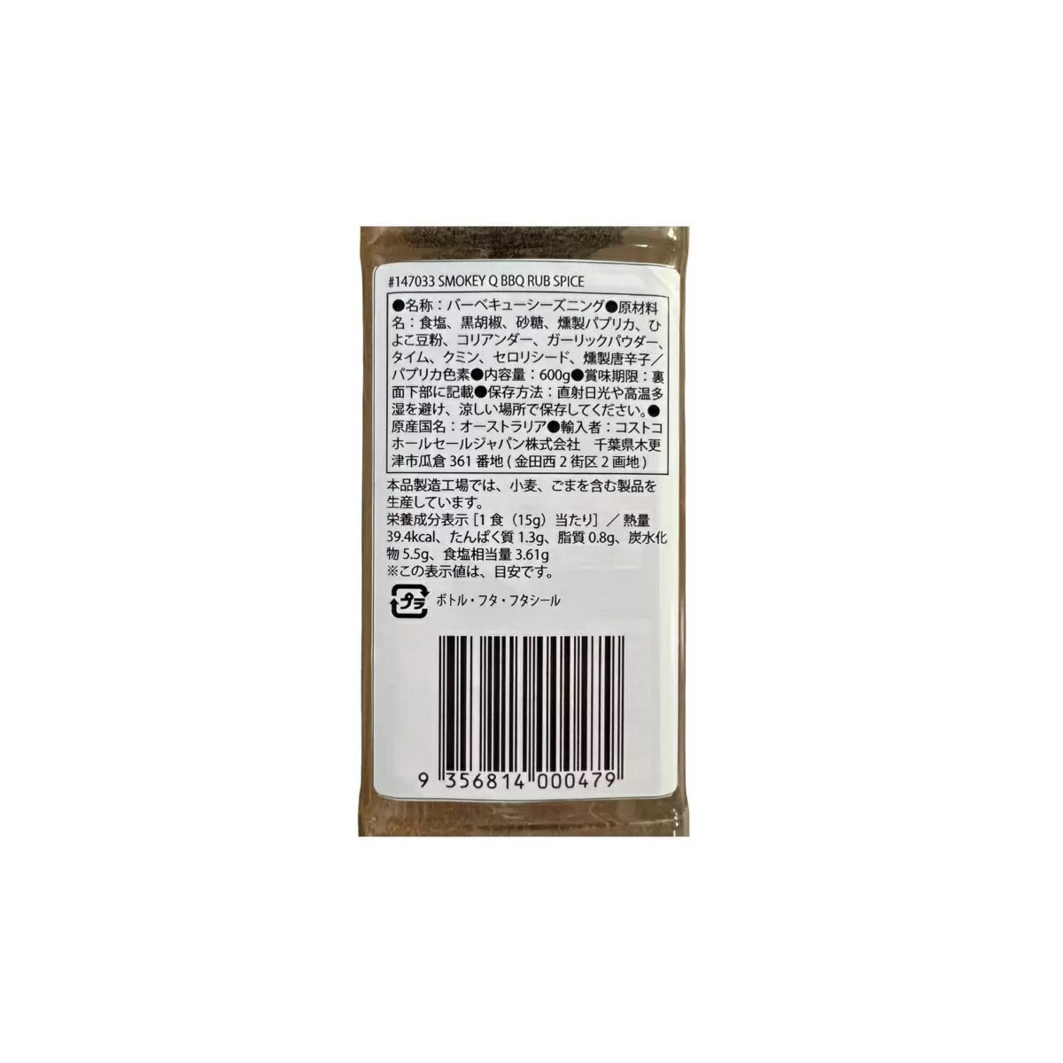【 SMOKEY Q 】スモーキーQ BBQ RUB スパイス 600g 147033 オーストラリア産 調味料 塩 焼肉 バーベキュー 肉料理 業務用 アウトドア ステーキ塩 グリル 自然由来原料 うま味調味料無添加 パーティー キャンプ スパイシー ギフト プレゼント コストコ 直送 男性