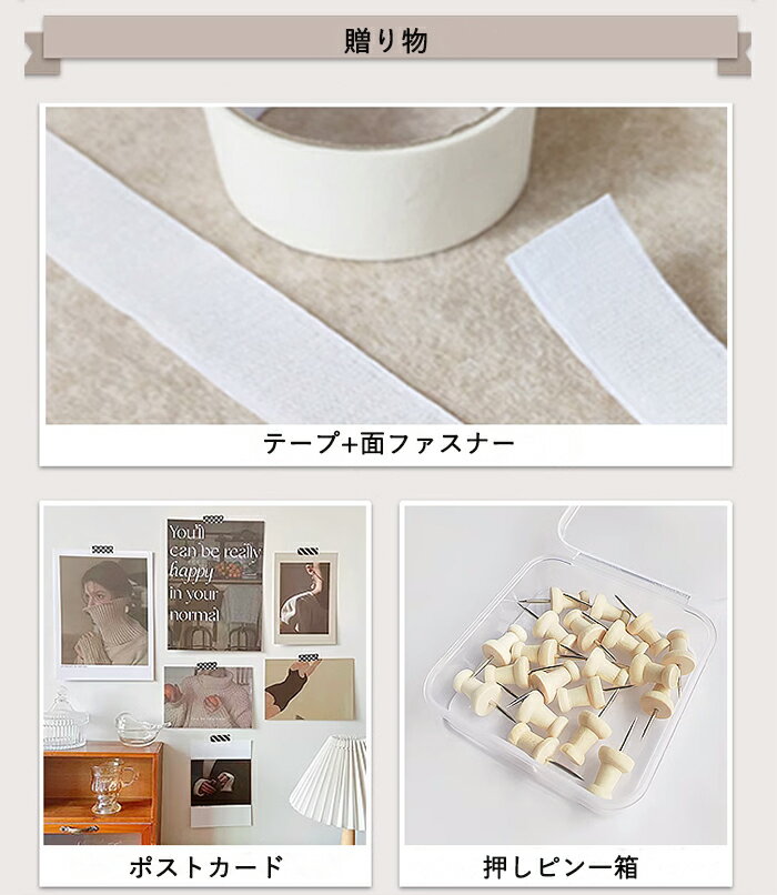 商品情報 仕様 素材:フェルト サイズ:約42*57cm/60*80cm/85*115cm カラー: カーキ、ライトキャメル、ブルー、ピンク セット内容:フェルトボード+面ファスナー+テープ+押しピン一箱+ポストカード 生産国:中国 納期 商品ページの納期(選択肢ところに書いております)で発送予定、申し訳ございませんが、 日時指定は御遠慮下さい お急ぎの方はご了承ください。 (天候や交通事情等の都合により配送期間は前後いたします。予めご承知下さいませ) 予約商品と即納商品を一緒にご注文いただいた場合、予約商品と同梱にて発送となります。 商品を複数まとめてご注文された場合、すべての商品が揃い次第発送とさせていただきます。 即納商品のみ先にお届けをご希望の場合は、お手数ですが別々にご注文下さい。 システムで在庫調整を行っておりますが、ご注文・入金のタイミングにより在庫数更新が間に合わず、 ご注文頂いた商品が欠品となる場合もございます。欠品となった場合は、その旨をメールにてご連絡させて頂きます。 注意 商品についてのご注意 ●商品の色味は、お客様のお使いのモニターの設定、照明等の環境により実際の色味と異なる場合がございます。 また、撮影時の環境(屋外、ストロボ等)により、室内で見る商品の色味・質感と異なって見える場合がございます。 ※モデル着用・スタッフ着用・その他の写真はイメージのため実際のお色と異なる場合がございます。 ●サイズに関して、デザイン・素材・製法などの違いにより、 同じサイズ表記でもそれぞれ履いた時の感覚が変わってきます。ご注意ください。 測り方等により、若干の誤差があり、お客様にお届けする商品と表記寸法に多少の誤差が生じる場合がございます。 予めご了承ください。 ●生産ロットにより、実物と多少の誤差がある場合がございます。 ●ご商品はメーカーサンプルにて撮影しております。細かな仕様(商品素材、色合い、その他装飾部品等) 変更などがされる場合がございます。 ●商品素材、色合い、その他装飾部品等、生産時期によって、若干の差異が生じます。 そのため、同じ商品を複数点ご購入の場合、差異がでる場合がございます。 メーカー様都合により、ご注文頂いた商品の在庫がない場合(生産中止)などが御座います。 大変恐れ入りますがその際には、メールもしくは電話にてご連絡いたします。 土日は休業日です。メールなどの対応、発送業務も行っておりません、ご了承下さい。 お申し込みの際は、サイズ・カラー等 よくご確認の上、ご注文くださいますようお願い申し上げます。 何かご不明な点、ご要望などございましたらメールにてお気軽にお問い合わせ下さいませ。