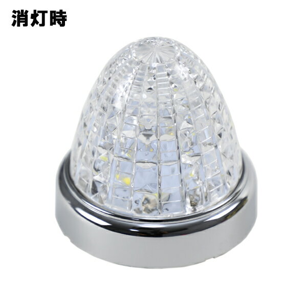【特徴】●OFF→ON続けて2回操作で光の色が切り替わる!(黄色?青色)●超高輝度SMD LED搭載!●洗練されたクロームメッキリング!●1本だけのリード線で簡単配線!●2重レンズで光の輝きを演出!●省電力・長寿命【仕様】●点灯時:黄色⇔赤色 (OFF?ON 2回操作切替式)●使用LED:黄3Wx3個 青3Wx3個●レンズ:クリアレンズ(アクリル)交換不可●定格電流(24V時):0.21A●消費電力(24V時):5.04W●主材質:SMD LED、アクリル、ABSクロームメッキ●回路:2駆動系統+スイッチング切り替え回路【注意】※ 複数のスイッチングマーカーを同じ発光色に点灯させる方法ON⇒OFF(点灯・消灯)のタイミング誤差により、複数点灯させたスイッチングマーカーの発光色が、異なる場合が有ります。その場合は、消灯して約10秒待ち、ON⇒OFF(点灯・消灯)を連続で4〜5回繰り返す事で、色を揃える事ができます。(操作は、5秒以内に行って下さい)