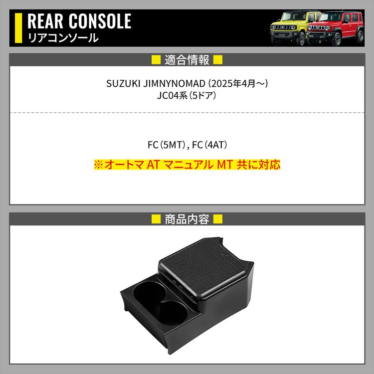 【予約】スズキ ジムニー ノマド 専用 リアコンソールボックス 車内収納ボック 車種専用設計 小物入れ ドリンクホルダー 多機能 アクセサリー カー用品 SUZUKI JIMNY NOMADE「abscon」