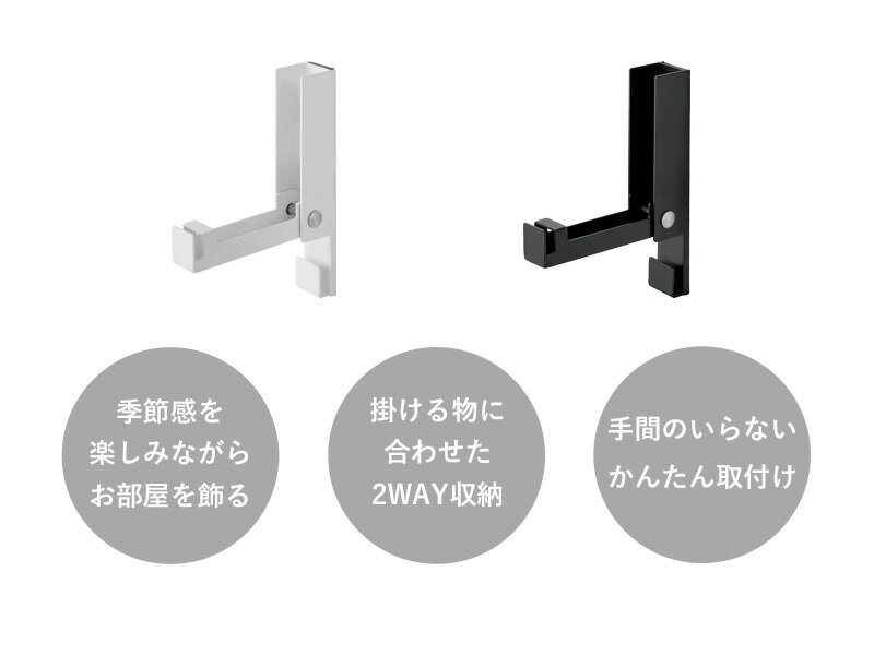風鈴&しめ縄ホルダー tower/タワー 季節の飾りを収納できる便利なホルダー。風鈴やしめ縄・クリスマスリースなど、季節の変化を楽しめます。 風鈴やしめ縄、クリスマスリースなど、季節ものの飾り付けに便利なフック型ホルダーです。 季節の移り変わりを楽しめる、豊かな暮らしをお届けします。 付属のマグネットかプッシュピンを使うことで、取り付けも簡単。 玄関扉や屋内の石こう壁などに取り付けて、お洒落に飾り付けを楽しみましょう。 シンプルかつモノトーンなデザインは、いい意味で生活感を隠してくれるので、 モダンでスタイリッシュな雰囲気を演出してくれます。 【使用上のご注意】 ・商品に同梱されている取扱説明書をお読みいただき、安全に取り付けを行ってください。 こちらもオススメ 折りたたみドアハンガー ドアハンガー6連 マグネット キーフック & トレイ ホルダー付きマグネットキーフック 商品名 風鈴&しめ縄ホルダー tower/タワー おすすめポイント 風鈴やしめ縄、クリスマスリースなど、季節のものの飾り付けに便利なフック型ホルダーです。 マグネットか付属のプッシュピンを使うことで、玄関扉や屋内の石こう壁などに簡単に取付けできます。 季節の移り変わりを楽しめる豊かな暮らしをお届けします。 色 ホワイト/ブラック サイズ 本体:約幅2.4×奥行2.3×高さ11cm 折り畳みフック使用時:約幅2.4×奥行8.5×高さ11cm 材質 本体:スチール、粉体塗装 仕様 付属品:マグネット×1、緩衝材(シリコーン)×2、石こうボード用プッシュピン×2 耐荷重:石こうボード用プッシュピン使用時/約750g、マグネット使用時/約400g、折り畳みフック使用時/先端約250g 生産国:中国 発送の目安 1-2営業日以内に発送予定 ※土日祝日は定休日 配送について 玄関先お届け 配達日時指定可 備考 沖縄県全域/離島への配送は別途送料が必要です(※送料は当店へご確認ください)