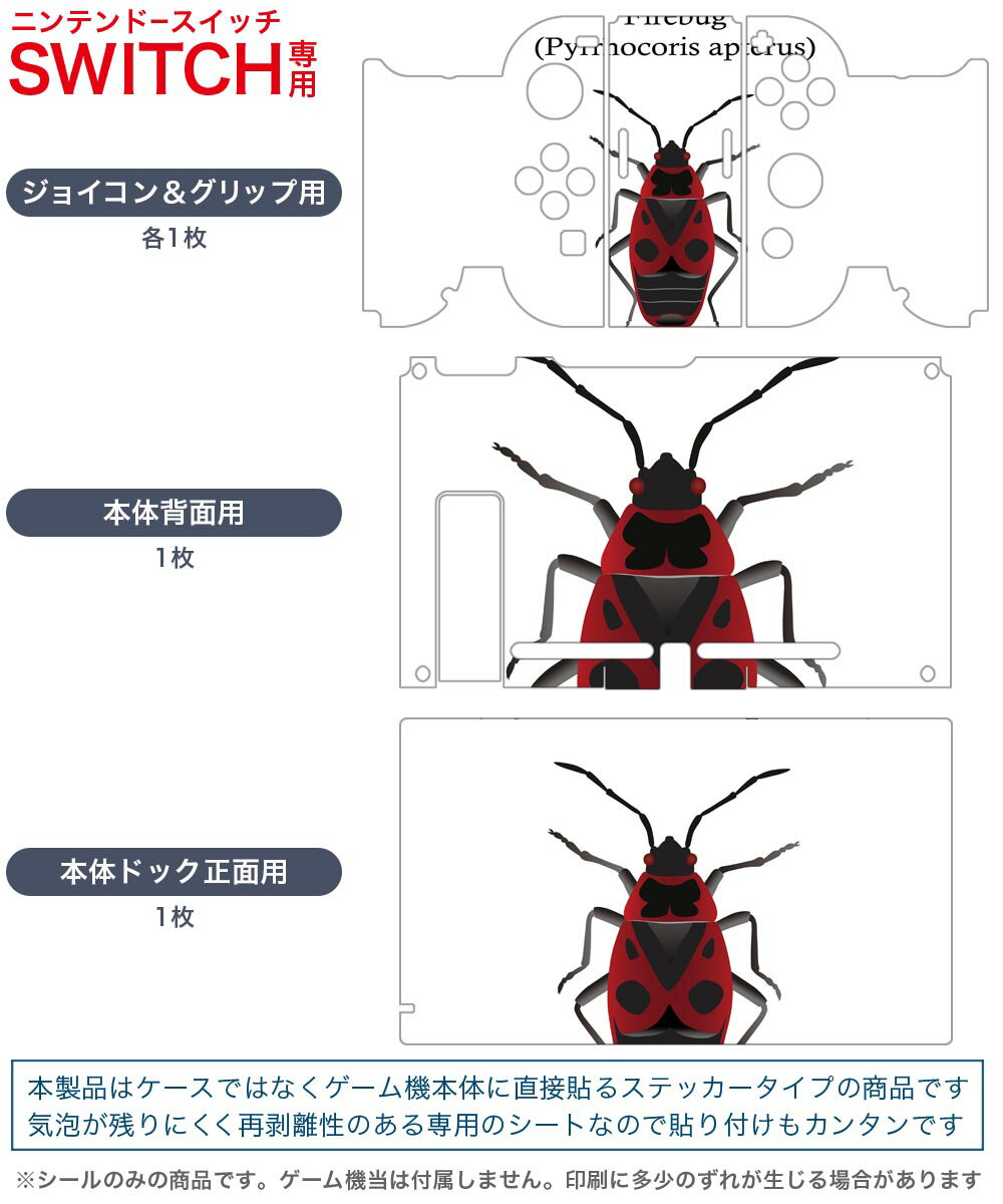 igsticker Nintendo Switch 用 デザインスキンシール 任天堂 ニンテンドー スイッチ 専用 本体ドック Joy-Con Joycon ジョイコン 専用 ゲーム機 カバー アクセサリー フィルム ステッカー 020021 虫 虫 irebug ファイアバグ