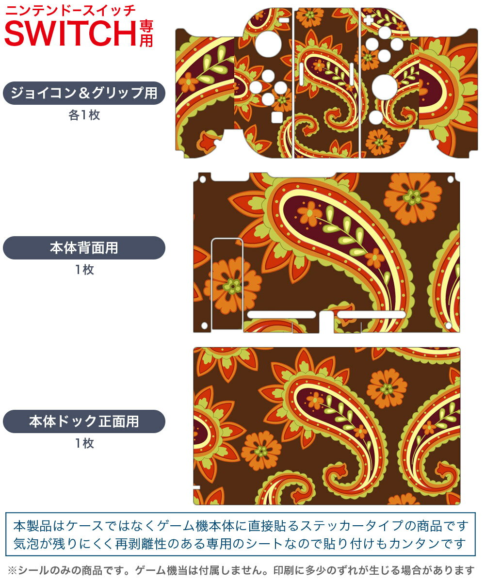 igsticker Nintendo Switch 用 デザインスキンシール 任天堂 ニンテンドー スイッチ 専用 本体ドック Joy-Con Joycon ジョイコン 専用 ゲーム機 カバー アクセサリー フィルム ステッカー 000404 ペイズリー ダマスク 花