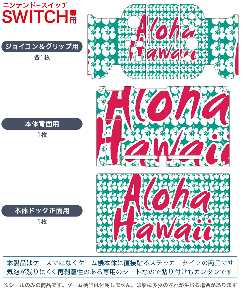 igsticker Nintendo Switch 用 デザインスキンシール 任天堂 ニンテンドー スイッチ 専用 本体ドック Joy-Con Joycon ジョイコン 専用 ゲーム機 カバー アクセサリー フィルム ステッカー 012453 ハワイ ハイビスカス 英字
