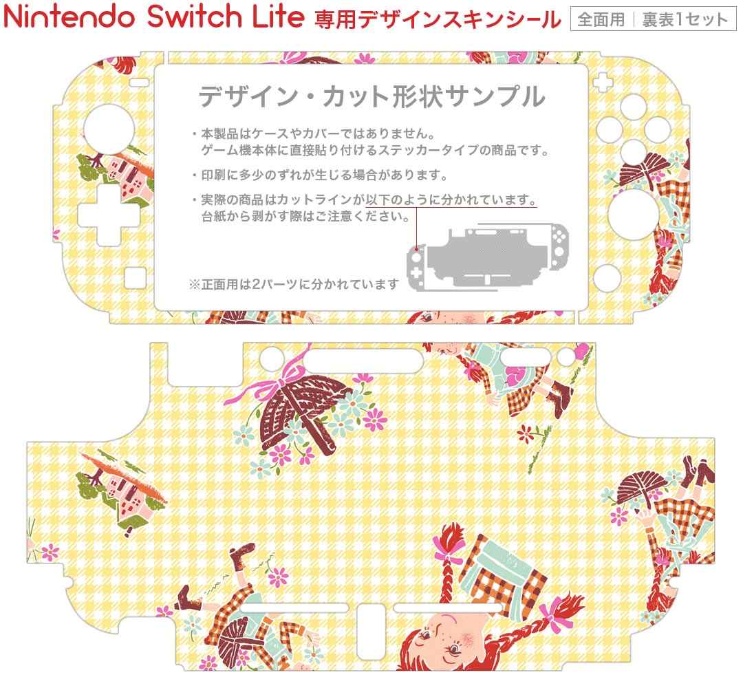 製品名 Nintendo Switch Lite専用 デザインスキンシール セット内容 Nintendo Switch Lite本体用スキンシール(裏表)各1枚 ※液晶側シールは2パーツに分かれていますニンテンドースイッチライト専用です。据え置き機のSwitch本体やJoyコンには対応していません。 商品特徴 3M社製の再剥離性シートを素材に採用し、細かな位置調整がしやすく貼り直しが容易です。また、エアフリーでもありますので気泡が簡単に逃げるので、キレイに貼ることができます。専用の業務プリンターを使い、商品画像と遜色のない美しい印刷仕上がり。 注意事項 画像はサンプルですので、ご覧の環境によっては多少色味に違いを感じる場合がございます。 イメージと違った、モニターと色味が異なるという理由での交換や返金はご対応出来かねます。スキンシールのみの販売で、ニンテンドースイッチ本体などは付属しません。シワができた場合、ドライヤーなどで軽く温め、外側に向けてシワを伸ばすように貼ってください。初回貼付時の位置調整や貼り直しは可能ですが、しっかりと押し付けて接着させた後の再剥離、再利用は保証しておりません。また接着部に油分や汚れが付着しますと角の部分は剥がれやすくなりますので、貼付時はあまり触れないようにご注意ください。無地のセミグロスシートにデザインをプリントした商品で、デコなどの加工はございません。 凹凸や光沢があるように見えたり布地や金属を素材にしたように見える商品もありますが、デザインの図版によるものです。印刷時に微妙な画像のズレが生じる場合がございます。ご注文後に1点1点制作する受注生産品の為、不良品以外のご返品や交換は固くお断りします。 商品発送 完全受注生産のハンドメイド商品となりますので、既製品と比べて発送までお時間を頂いています。 基本的に決済確認後2?3営業日、最大で10営業日での発送となります。繁忙期や休業日明けの場合はさらに時間がかかる場合があります。 その際には別途メールにてご連絡致します。メール便の場合、発送日から到着までに2?4日ほどかかる場合が多く、紛失などの保障もご対応できかねます。あらかじめご了承下さい。