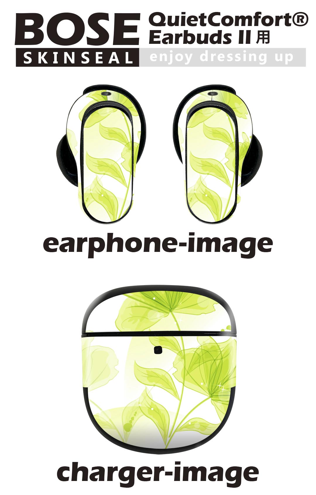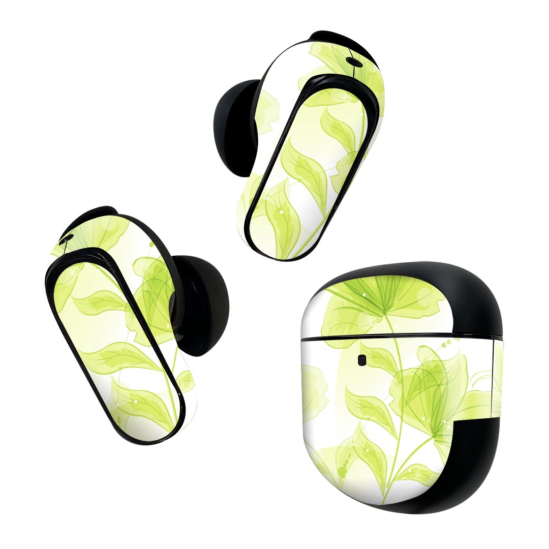 Bose QuietComfort Earbuds II 用 スキンシール ボーズ イヤバッズ2 用 ステッカー 本体3セット ケース1セット 保護 フィルム デコ 花 緑 001840