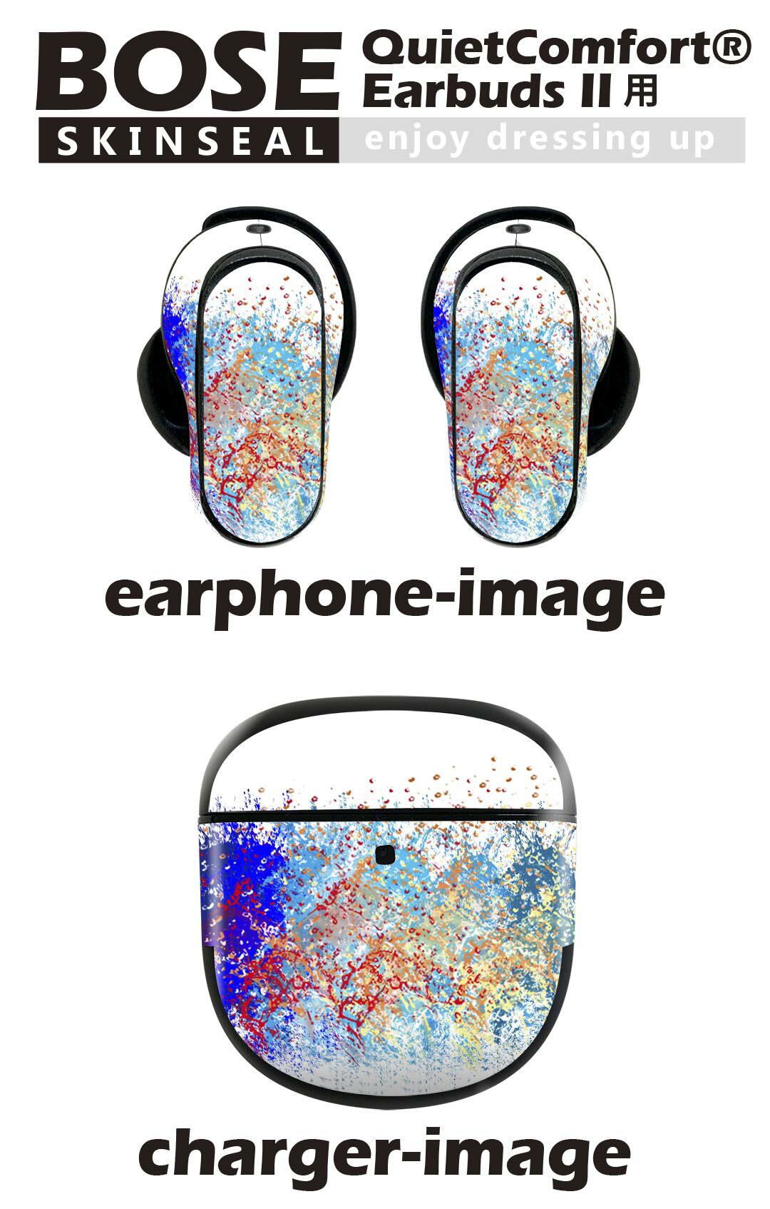 Bose QuietComfort Earbuds II 用 スキンシール ボーズ イヤバッズ2 用 ステッカー 本体3セット ケース1セット 保護 フィルム デコ インク 青 ブルー 模様 ペンキ 008597